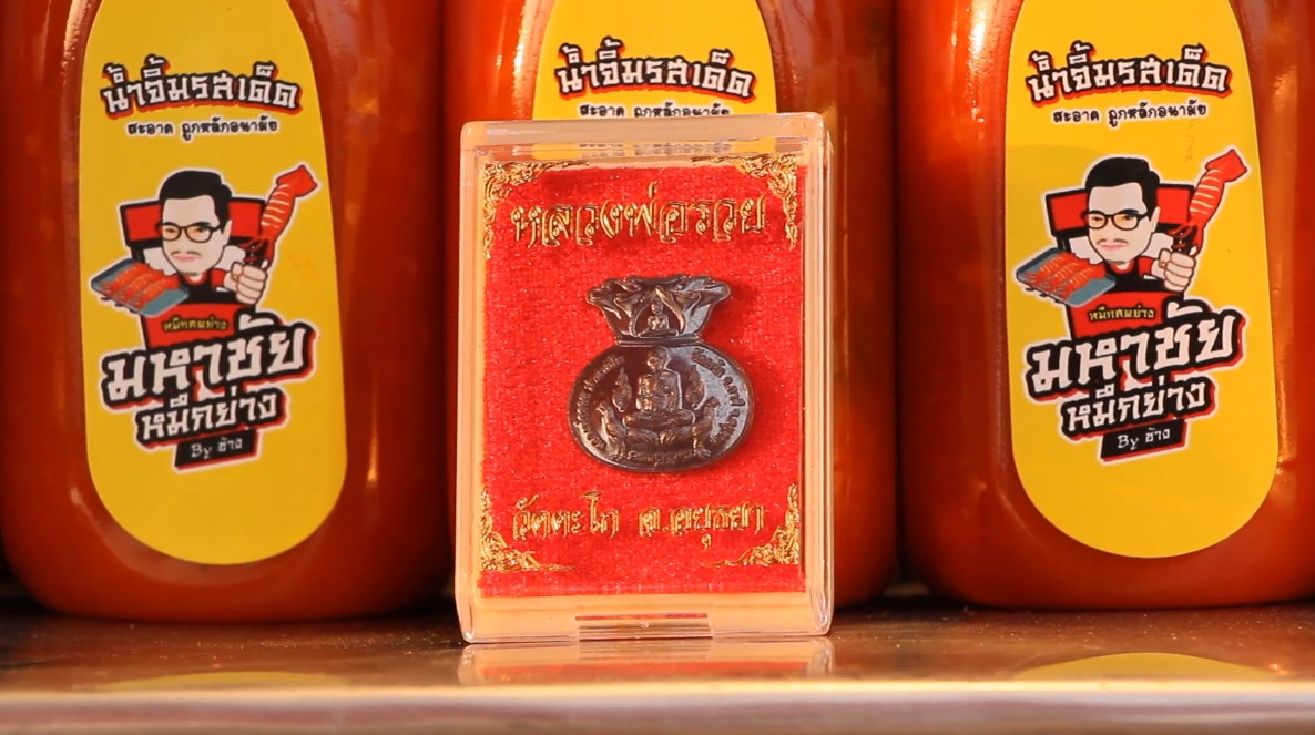ซึ่งตนเองกับครอบครัวก็มีความสุขที่ได้แจกหลวงพ่อรวยให้ลูกค้า จากที่เคยเครียดๆ ตอนนี้ก็รู้สึกว่าสบายใจขึ้น มีความสุขกับการขายปลาหมึกย่างและก็มีความสุขทางใจไปด้วย ที่ได้แจกหลวงพ่อรวยตอบแทนบุญคุณของลูกค้า จริงๆอยากแจกให้กับลูกค้าทุกๆคน แต่เหรียญหลวงพ่อรวยมีจำนวนจำกัด จึงจำเป็นต้องแจก เพียงวันละ 8 คู่ ไปจนถึงวันที่ 14 กุมภาพันธ์ วันวาเลนไทน์ วันแห่งความรัก ให้กับลูกค้าที่มาอุดหนุนซื้อปลาหมึกย่าง เพียง 20 บาทเท่านั้น แต่ลูกค้าตั้งมาเป็นคู่ คู่แม่-ลูก คู่ซี้เพื่อนกัน คู่รัก ทุกเพศ ทุกวัย สำหรับวันที่ 14 กุมภาพันธ์ วันวาเลนไทน์ วันแห่งความรัก จะพิเศษหน่อยจะแจก จำนวน 100 คู่ หมดแล้วหมดเลย