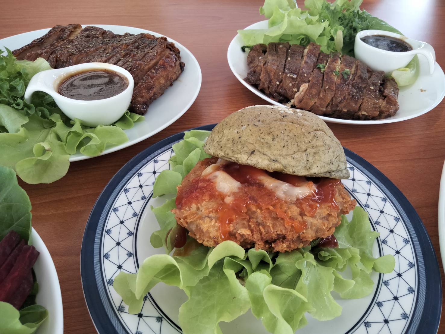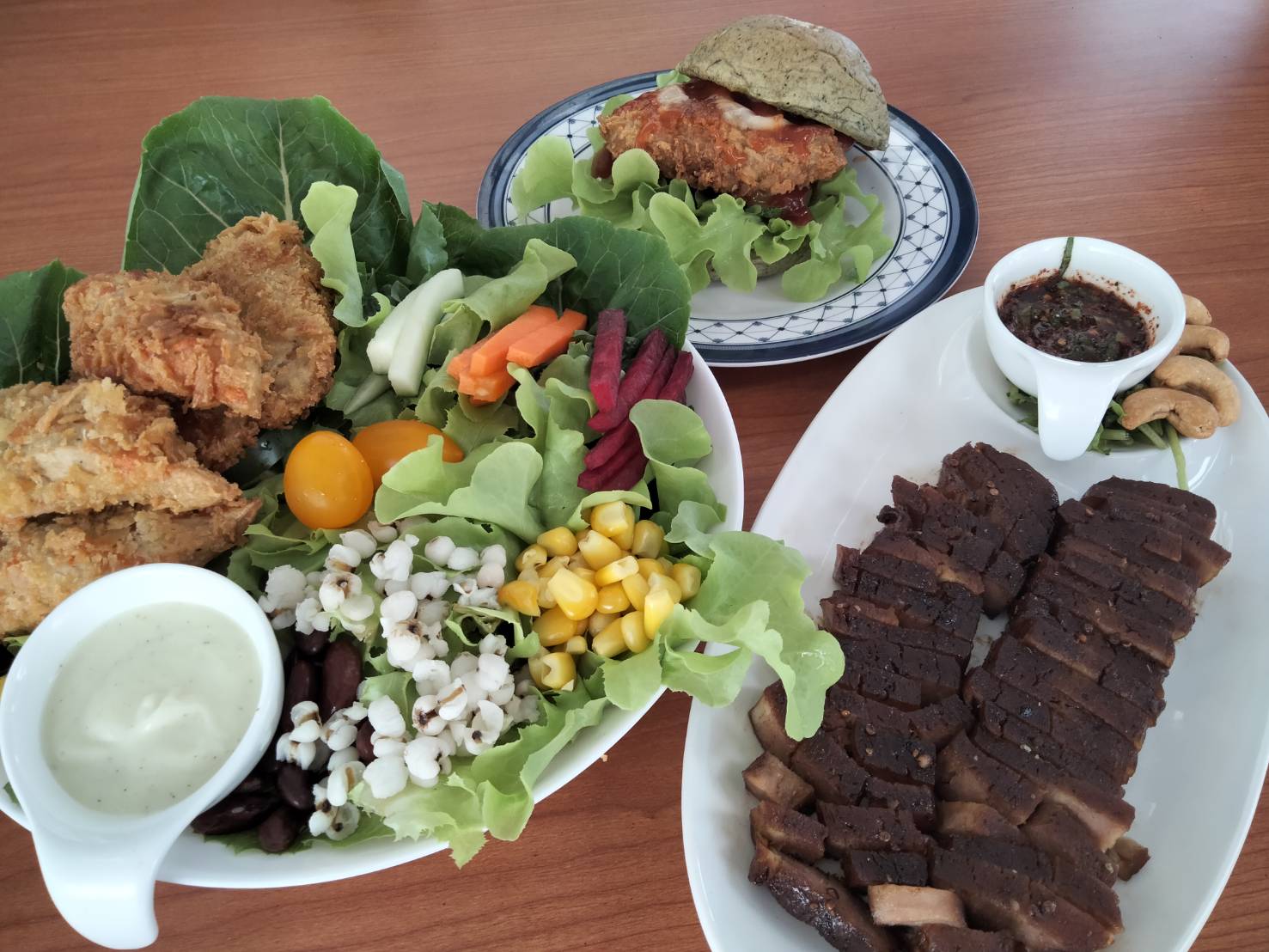 ที่ฟาร์มพักปลอดสารพิษ VIP ฟาร์ม ตำลบทับเที่ยง อำเภอเมืองตรัง 2 ผู้ประกอบการด้านอาหารสุขภาพ คือ ผู้ประกอบการโรงงานผลิตซอสกำเจือง ซอสปรุงรส ซีอิ้ว กับ ผู้ประกอบการฟาร์มผักVIPฟาร์ม ร่วมกันเปิดโซนอาหารสุขภาพ สปาฟู้ด เพื่อเอาใจผู้ที่นิยมรับประทานอาหารสุขภาพ และ เพื่อผู้สนใจทดลองรับประทานอาหารสุขภาพ สำหรับสปาฟู้ด คือ อาหารเทียบลักษณะเหมือนเนื้อสัตว์เทียม ผลิตจากโปรตีนถั่วเหลือง ปราศจากส่วนผสมของเนื้อสัตว์ แต่มีรสชาติอร่อย รับประทานง่าย โดยโซนอาหารสปาฟู้ด จะมีบริหารอาหารสปาฟู้ดเป็นอาหารจานด่วน พร้อมทานให้บริการลูกค้า เช่น เมนูสกัดกุ้งกอด หมูย่างน้ำจิ้มแจ๋ว แฮมบอเกอร์ แซนวิส สเต็ก ไส้กรอกอีสานย่าง และไก่ย่าง เป็นต้น ซึ่งนอกจากจะมีอาหารจานด่วนแล้ว ภายในร้านได้จำหน่ายอาหารสปาฟู้ดสำหรับลูกค้านำไปปรุงเอง รวมทั้งมีส่วนจัดจำหน่ายผัก ผลไม้ เห็ด และเครื่องดื่มเพื่อสุขภาพ