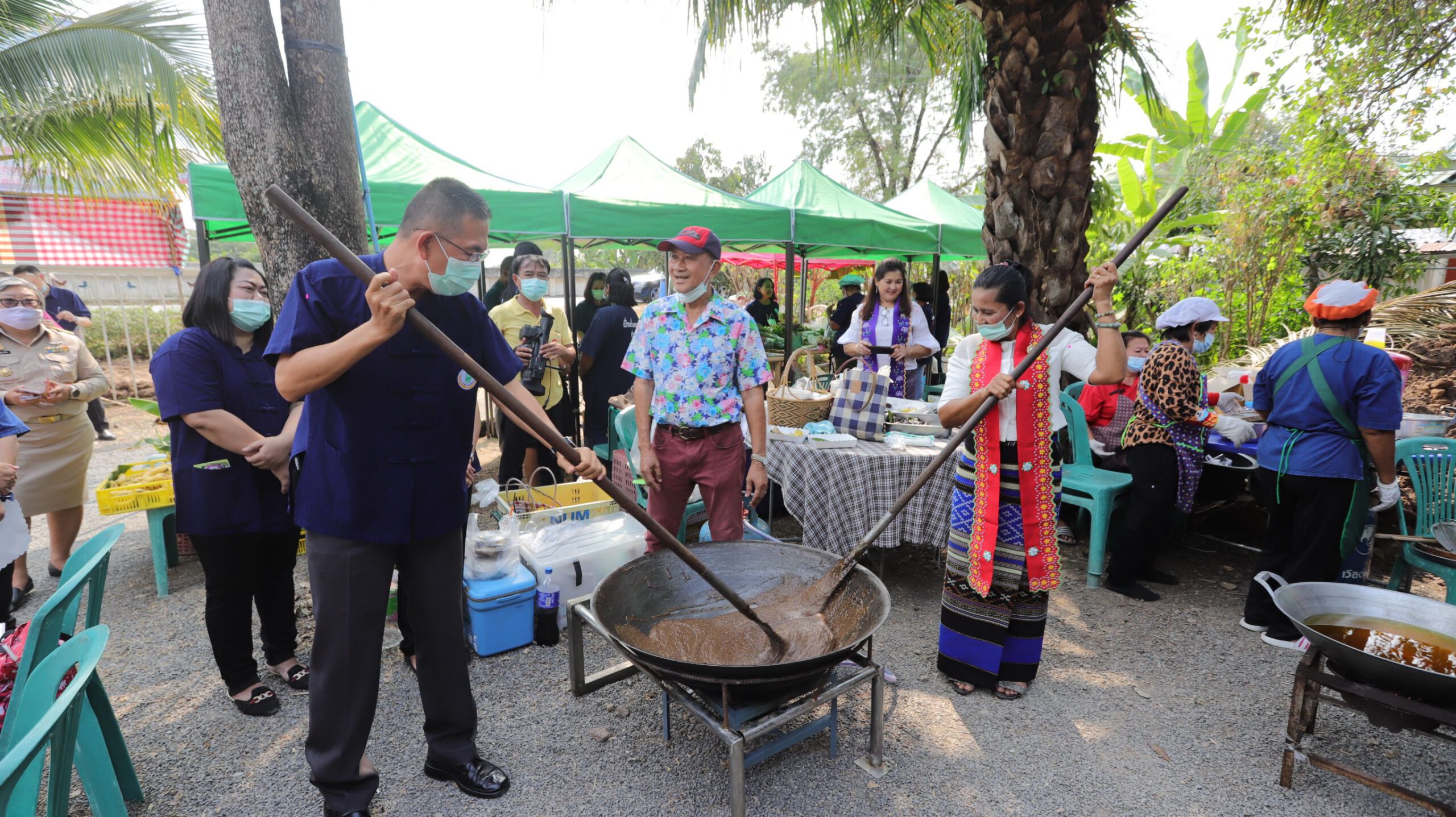 จากนั้นดร.กนกวรรณ วิลาวัลย์ รัฐมนตรีช่วยว่าการกระทรวงศึกษาธิการได้เดินเยี่ยมชมสินค้าที่พัฒนาโดยศูนย์ฝึกอาชีพชุมชน กศน.ปทุมธานี อาทิ สไบมอญ กล้วยหอมทองพันล้าน ฝรั่งกิมจูเกษตรธรรมชาติ ผลิตภัณฑ์จากผักตบชวา (ปุ๋ย/ตะกร้าสาน) ผลิตภัณฑ์กระเป๋าหนัง ผลิตภัณฑ์ปลาดุกแปรรูป ผลิตภัณฑ์จากผ้ามัดย้อม ผลิตภัณฑ์ผ้าด้นมืออาหารขนมขึ้นชื่อเมืองปทุม (เมี่ยงคำกลีบบัวหลวง/ขนมเปี๊ยะไส้ถั่วแดง) กาละแมรวงข้าวโดยดร.กนกวรรณ วิลาวัลย์ได้ร่วมกวนกาละแมและทอดกล้วยหอมเงินล้านกับผู้ว่าราชการจังหวัดปทุมธานีโชว์อีกด้วย