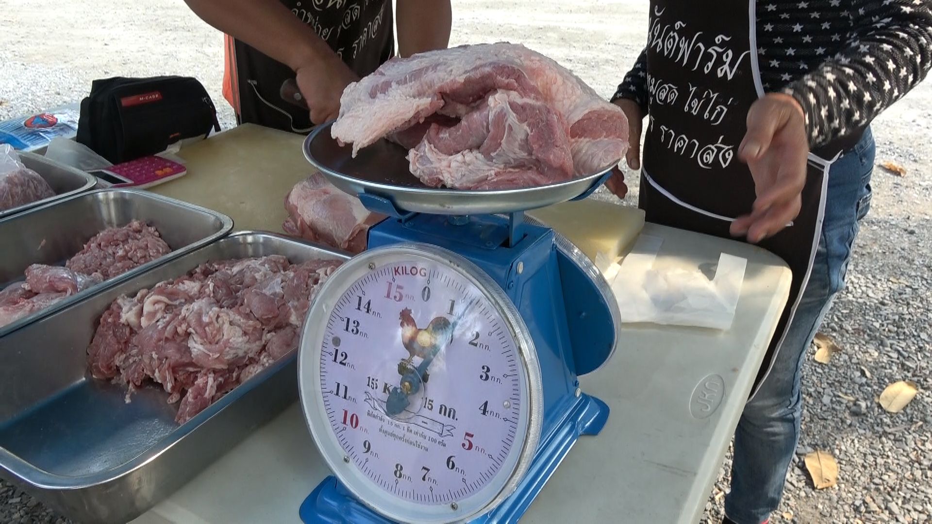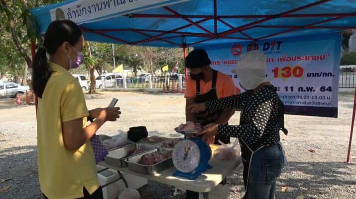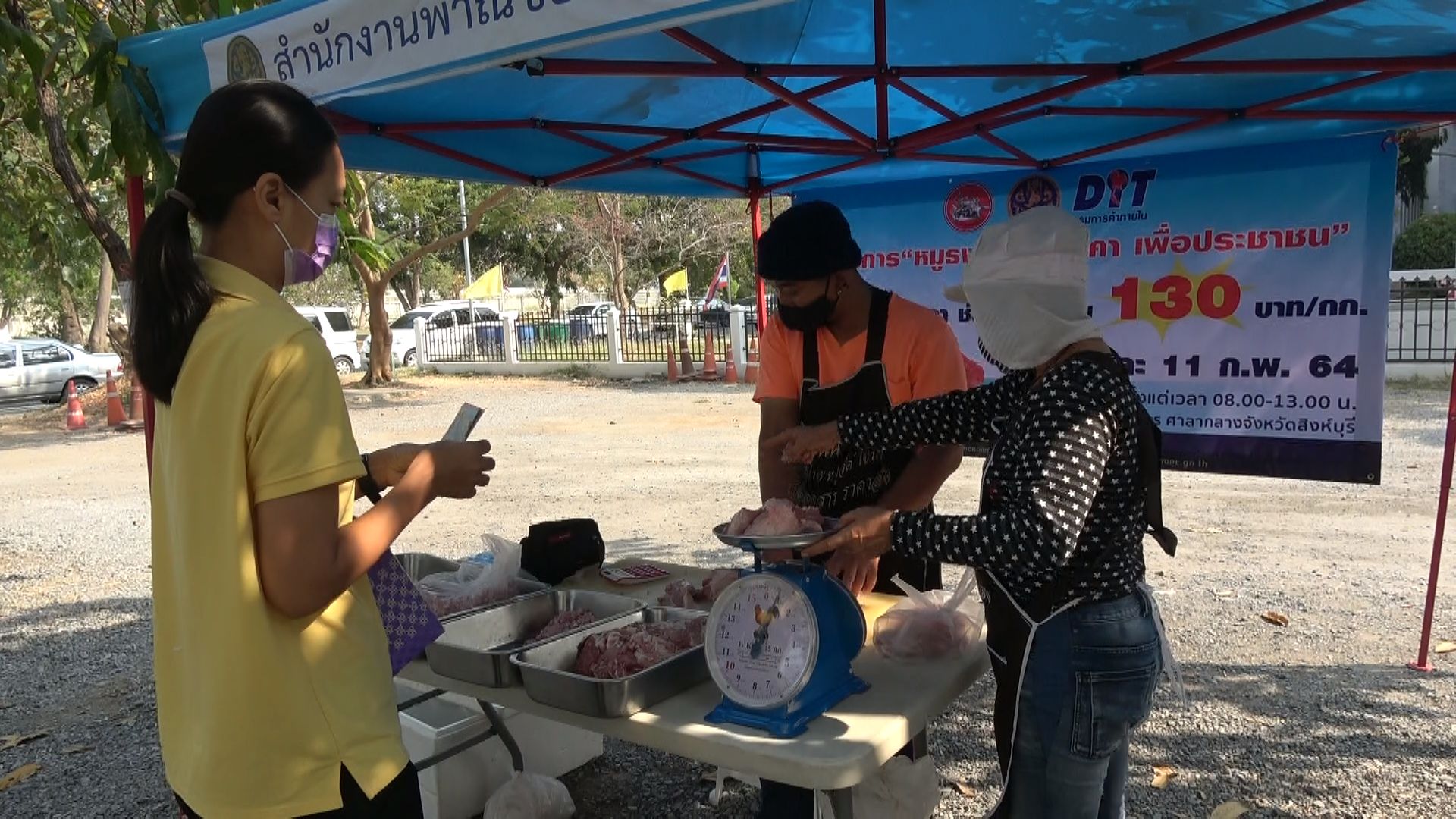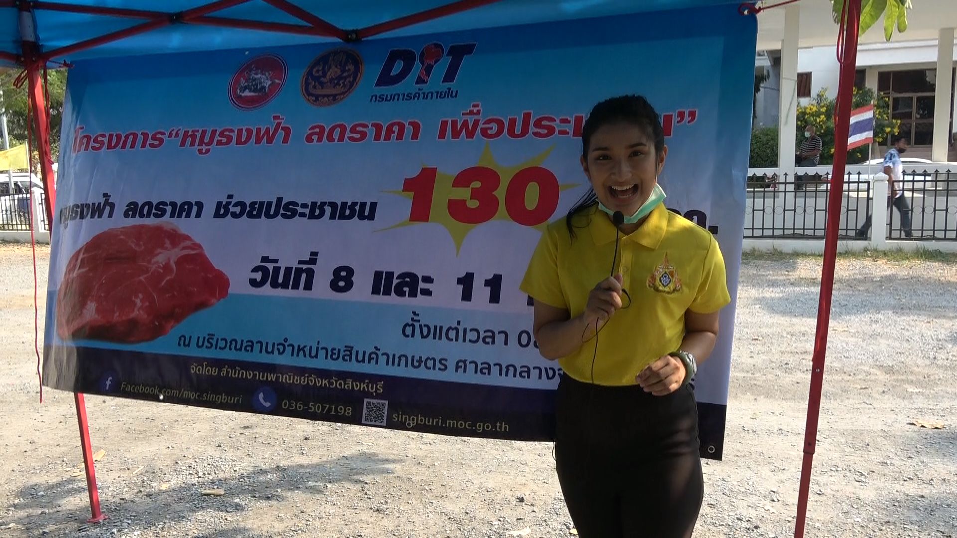 พาณิชย์จังหวัดสิงห์บุรี เปิดจำหน่ายเนื้อหมูธงฟ้า คุณภาพดี ราคาถูก กิโลกรัมละ 130 บาท