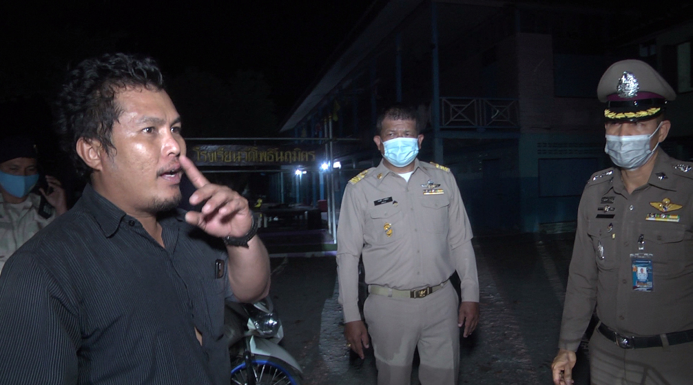 พ.ต.อ.วรภพ จำปาเงิน ผกก.สภ.ศรีประจันต์ ที่มาร่วมระงับเหตุจึงสั่งการให้เจ้าหน้าที่ตำรวจออกติดตามตัวและจับกุมไว้ได้นำตัวมาสอบสวนทราบว่าผู้ก่อเหตุชื่อนายณัฐพล อายุ 38 ปีเป็นชาว จ.ลพบุรี ทำงานเป็นช่างปูกระเบื้องก่อนเกิดเหตุได้มาทำงานปูกระเบื้องที่โรงเรียนแต่มีปัญหากับผู้รับเหมาเนื่องจากชอบดื่มเหล้าก่อนก่อเหตุได้ดื่มเหล้าขาวเข้าไป4ขวดจนเกิดอาการเมาจนขาดสติหาเรื่องทะเลาะกับคนงานซึ่งอยู่ใกล้กับบ้านพักครูและส่งเสียงดังครูสายัณห์ ซึ่งอยู่ที่บ้านพักครูจึงมาบอกให้หยุดทะเลาะกันสร้างความไม่พอใจให้กับนายณัฐพล จึงคว้าจอบไล่ทำร้ายคนงานและต่อยครูสายัณห์ ได้รับบาดเจ็บครูสายัณห์จึงคว้าท่อนไม้เป็นอาวุธต่อสู้และต่อยกลับกระทั่งชาวบ้านมาช่วยนายณัฐพล จึงทิ้งจอบวิ่งหนีกระทั่งถูกจับแต่ทางครูสายัณห์ ไม่ติดใจเอาเรื่องตำรวจจึงนำตัวไปสงบสติอารมณ์ที่โรงพัก