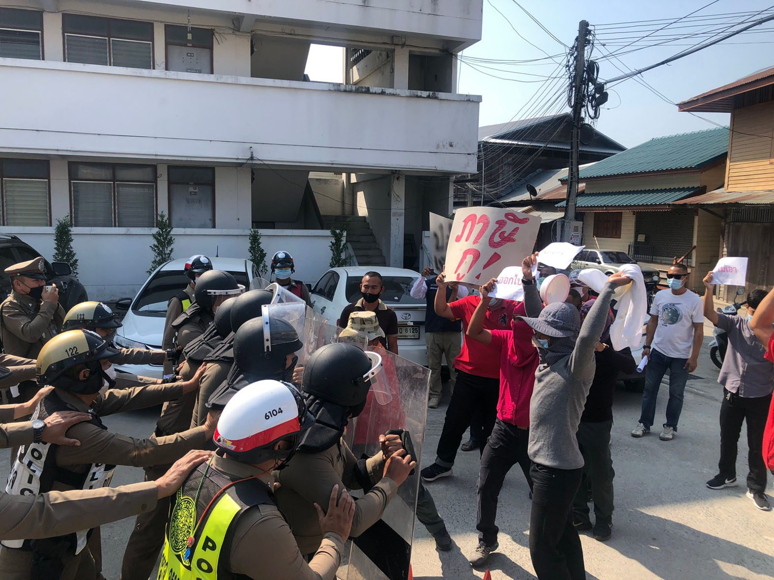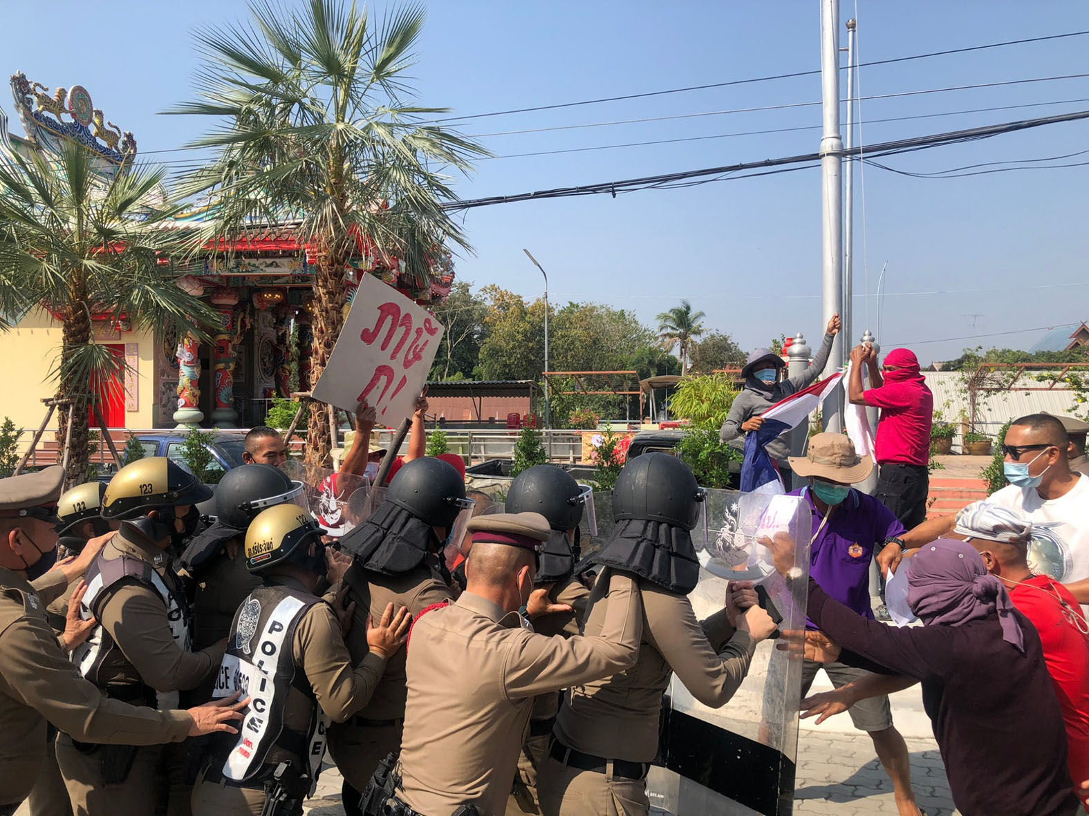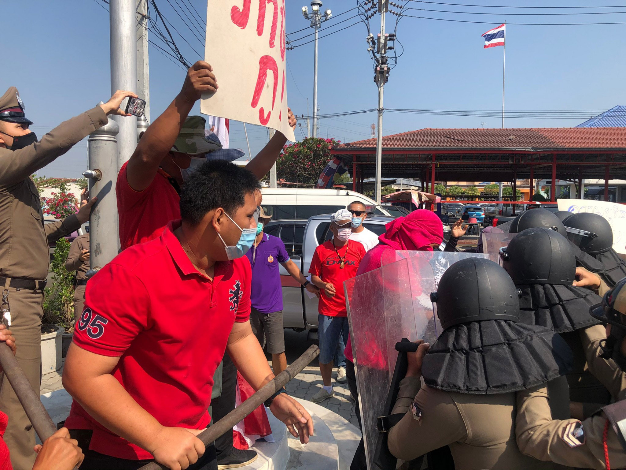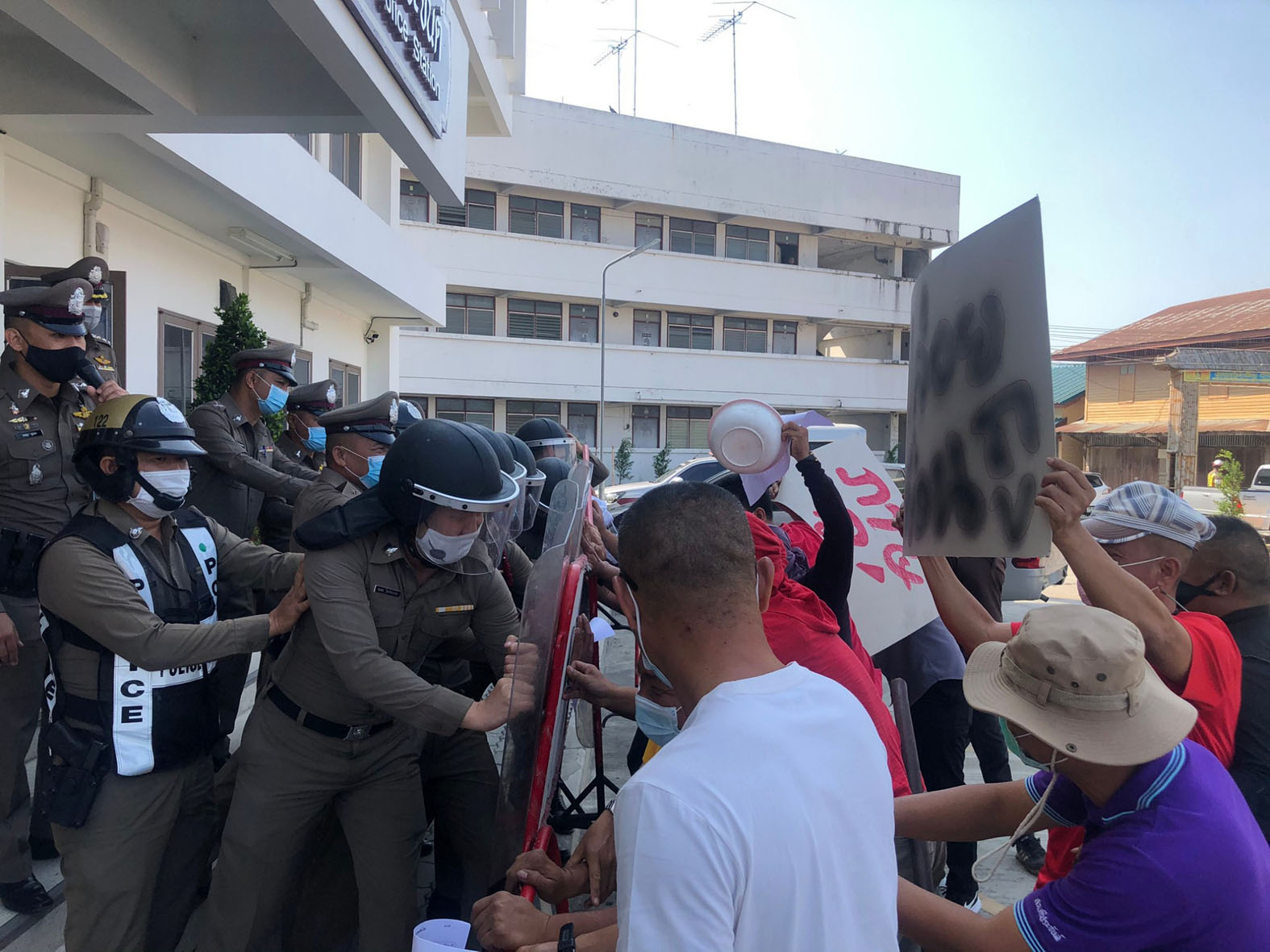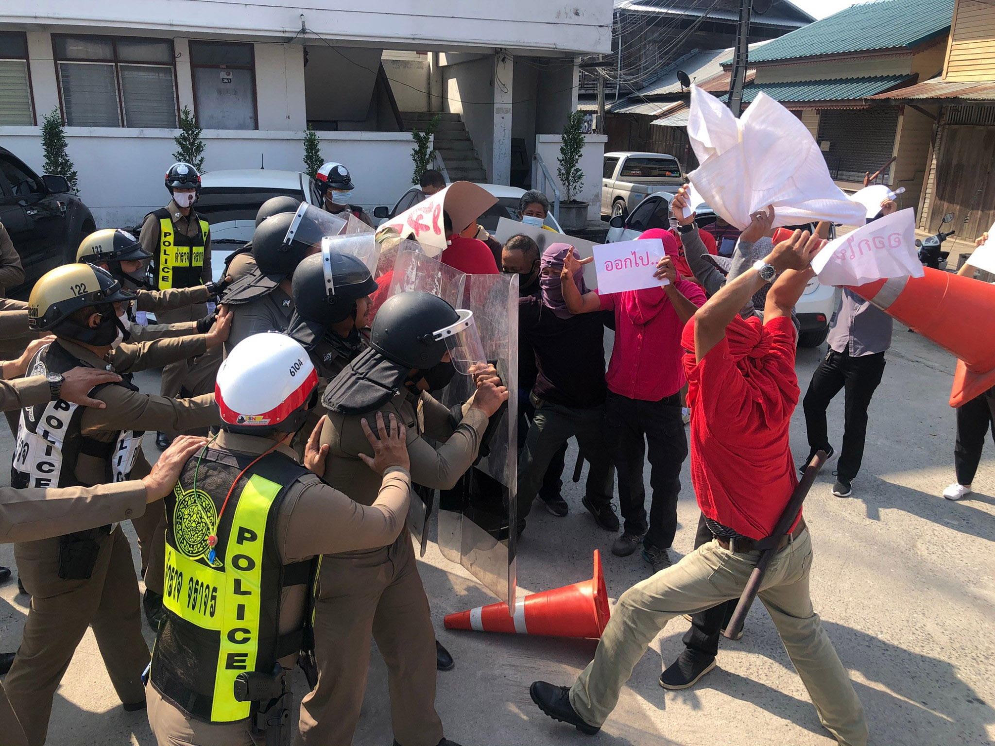 กรณี มีกลุ่มผู้ชุมนุมจำนวนมากถือป้ายข้อความต่างๆมารวมกันตัวเรียกร้อง และพยายามบุกเข้าไปในโรงพัก และพยายามทำลายทรัพย์สินของทางราชการเช่นการปลดธงชาติ หน้าโรงพัก รวมทั้งการที่ม็อบใช้กำลังเข้าปะทะเพื่อฝ่าแนวกั้นกับเจ้าหน้าที่เข้าไปกำลังเจ้าหน้าที่ตำรวจชุดควบคุมฝูงชนก็พยายามจับกุมตามยุทธวิธีจากการฝึกอบรมมาปรับใช้ทั้งนี้ได้มุ่งเน้นความปลอดภัย และการเจรจาเป็นหลักทั้งนี้เพื่อลดการบาดเจ็บและการสูญเสียของทั้งสองฝ่ายเป็นหลัก