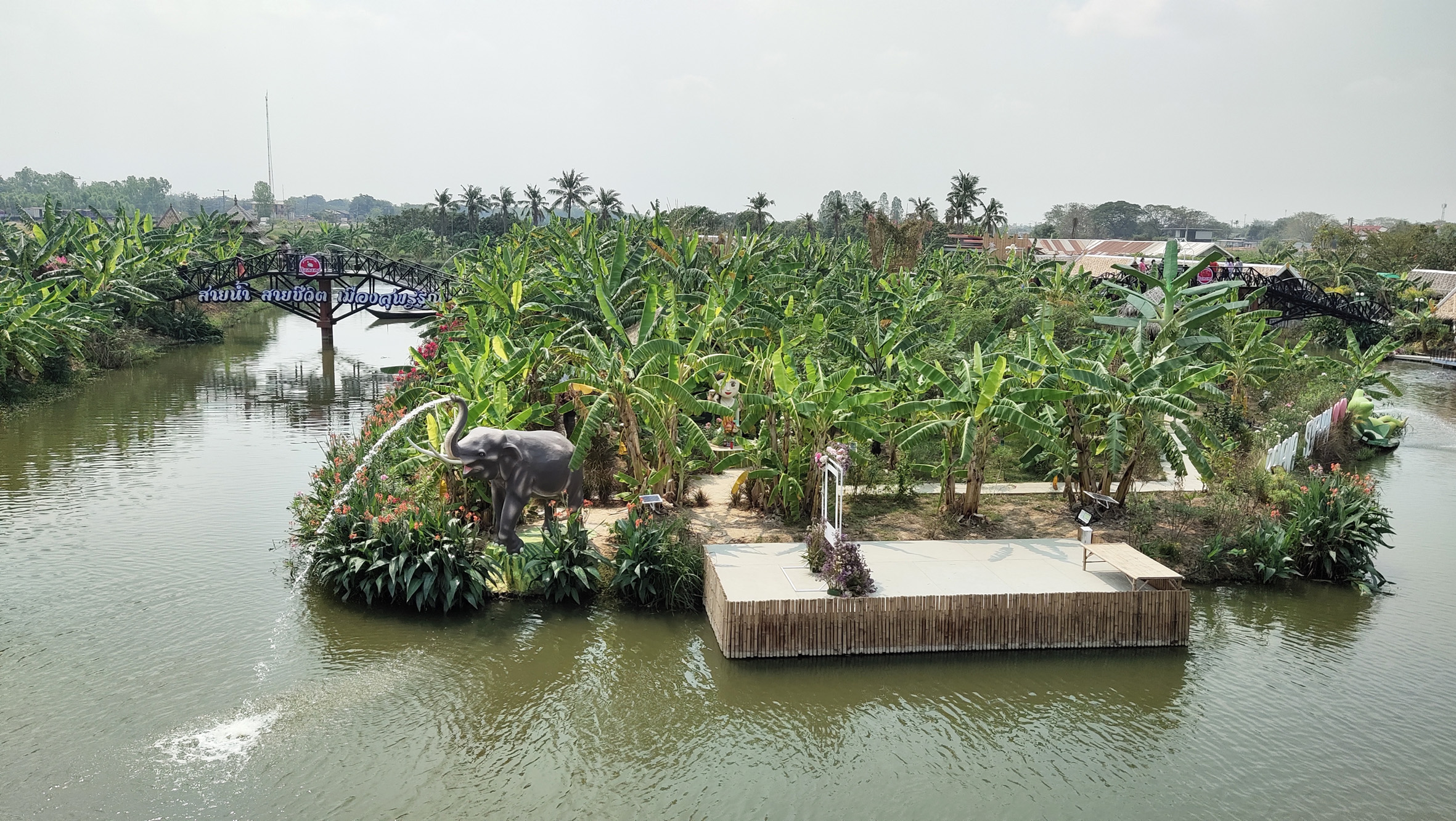 ที่ศูนย์อนุรักษ์พันธุ์กล้วยสุพรรณบุรี อยู่หลังวัดป่าเลไลยก์วรวิหาร อ.เมือง จ.สุพรรณบุรี คู่รักหนุ่มสาวและนักท่องเที่ยว ต่างไปถ่ายรูปเช็คอิน บนสะพานบอกรักกันอย่างคึกคัก ทางสวนกล้วยสุพรรณบุรี ตกแต่งสถานที่ประดับประดาซุ้มดอกไม้บนสะพานให้คู่รักหนุ่มสาว คู่ครอบครัว พ่อ แม่ ลูก ขึ้นไปบนสะพาน ณ.จุดชมวิวบนสะพานบอกรักกันหวานชื่น ถ่ายรูปเซลฟี่ไว้เป็นที่ระลึก ต้อนรับเดือนแห่งความรัก พร้อมกับชวนกันไปสร้างกุศลข้ามสะพานบุญ ลงไปให้อาหารปลา-เลี้ยงเต่าพันปี เพื่อให้มีความร่มเย็นเป็นสุข รักกันยืนยาวและนำผลไม้ ดอกกุหลาบ ไปขอพร มั่ง มี ศรี สุข ที่ศาลพ่อขุนช้างมหาลาภ หลวงพ่อถิร อดีตเจ้าอาวาสวัดป่าเลไลยก์วรวิหาร พระเกจิดังแห่งเมืองสุพรรณบุรี