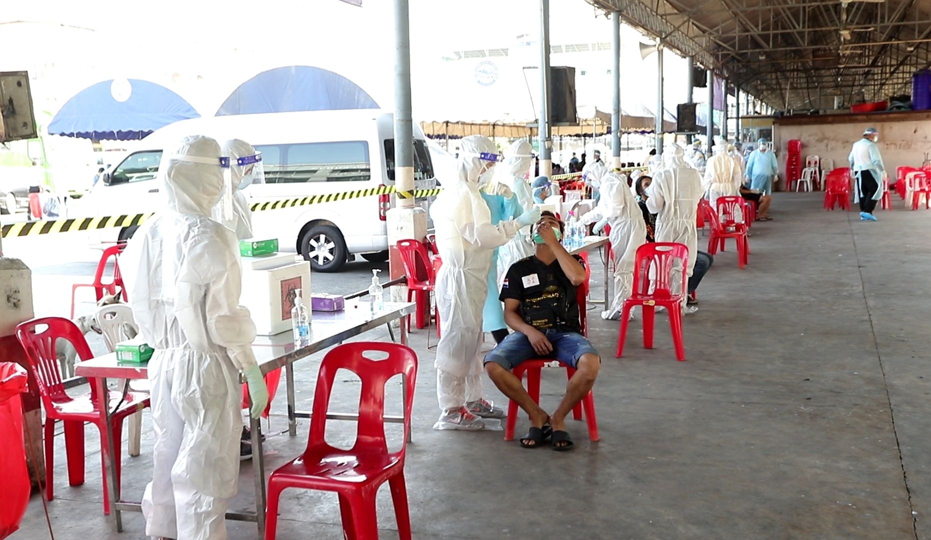 เมื่อเวลา 14.00 น. วันที่ 13 ก.พ. ที่จุดคัดกรองตลาดพรพัฒน์ ซอยรังสิต-ปทุมธานี 19-21 ต.ประชาธิปัตย์ อ.ธัญบุรี จ.ปทุมธานี เจ้าหน้าที่โรงพยาบาลประชาธิปัตย์ พร้อมด้วย เจ้าหน้าที่สาธารณสุขอำเภอธัญบุรี ได้บูรณาการร่วมกันเร่งตรวจคัดกรอง แรงงานในตลาด และ เจ้าของร้าน ทั้งนี้เจ้าหน้าที่สาธารณสุขจะดำเนินการสืบประวัติ แรงงานต่างด้าวที่เข้าทำการตรวจสอบสวนโรค พร้อมดำเนินการตรวจหาเชื้อโดยวิธีการ SWAB คือการนำไม้สอดเข้าไปในจมูกเพื่อเก็บสารคัดหลั่งจากหลังโพรงจมูก (Nasopharyngeal swab) นำสารคัดหลั่งเพื่อตรวจหาเชื้อโควิด-19 โดยตั้งแต่วันที่ 9 ก.พ. ได้ทำการตรวจคัดกรองไปจำนวน 169 พบผู้ติดเชื้อจำนวน 32 คน วันที่ 11 ก.พ. ตรวจคัดกรองไปจำนวน 288 คนพบผู้ติดเชื้อจำนวน 52 คน และในวันที่ 12 ก.พ. ตรวจคัดกรองไปแล้ว 360 คน พบเพิ่มอีก 40 คน โดยทั้ง 3 วัน ได้ตรวจคัดกรองไปแล้วกว่า 817 คนพบผู้ติดเชื้อโดยรวมทั้งคนไทย และ ต่างด้าว ติดเชื้อแล้วจำนวน 124 คน