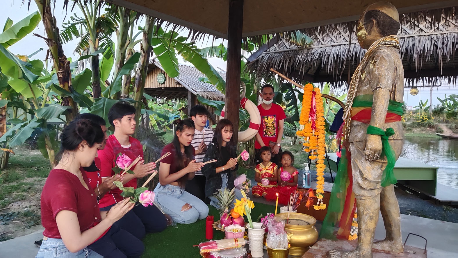 คุณอานนท์ รักผล ประธานศูนย์อนุรักษ์พันธุ์กล้วยสุพรรณบุรี เล่าให้ฟังว่าทางสวนกล้วยสุพรรณบุรี ส่งเสริมให้คนรักกัน อยากให้คนทั้งประเทศรักกัน ความสงบร่มเย็นก็จะบังเกิดขึ้น หนุ่มสาวรักกัน พี่น้องรักกัน ลูกรักพ่อแม่ ครอบครัวบอกรักกันบ่อยๆ เริ่มต้นจากจุดเล็กๆในครอบครัว ทุกวันเสาร์-อาทิตย์ ศูนย์อนุรักษ์พันธุ์กล้วยสุพรรณบุรี ก็มีตักบาตรพระสงฆ์ทางเรือ สำหรับศูนย์อนุรักษ์พันธุ์กล้วยสุพรรณบุรี เปิดให้ประชาชนและนักท่องเที่ยวเข้าชมฟรีทุกวัน ตั้งแต่เวลา 07.00-21.00 โทร.092-590-9595 ก่อนเดินทางกลับแอบกระซิบ เอาใจสายมู มูเตลู ประเภทความเชื่อของขลังต่างๆ ของไหว้ น้ำแดง ผลไม้ต้องมา ตานีน้อย ให้โชคและประติมากรรมไม้ใต้น้ำปู่ยาวเฝ้าทรัพย์ ที่ใครเห็นต้องแอบอมยิ้มทุกคู่