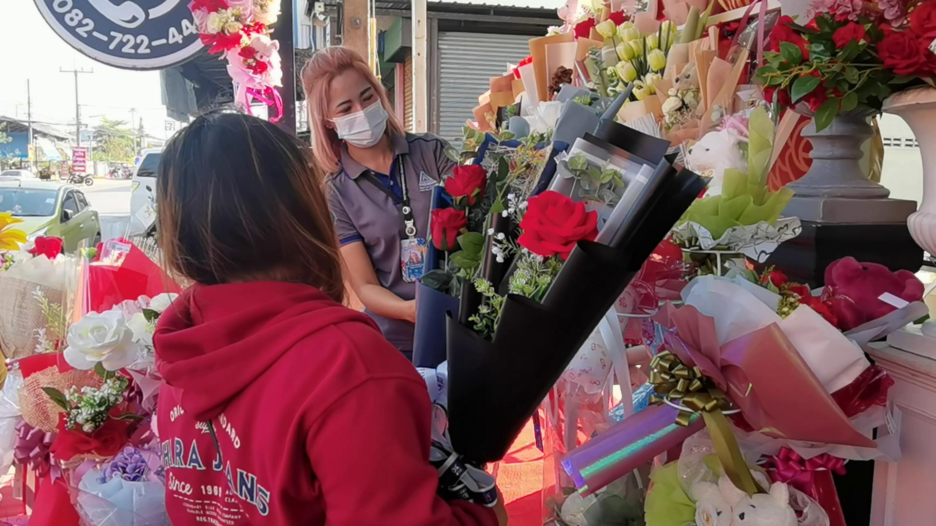 ราชบุรี คึกคัก ประชาชนแห่ซื้อดอกกุหลาบรับวันวาเลนไทน์ แม้เจอพิษโควิด