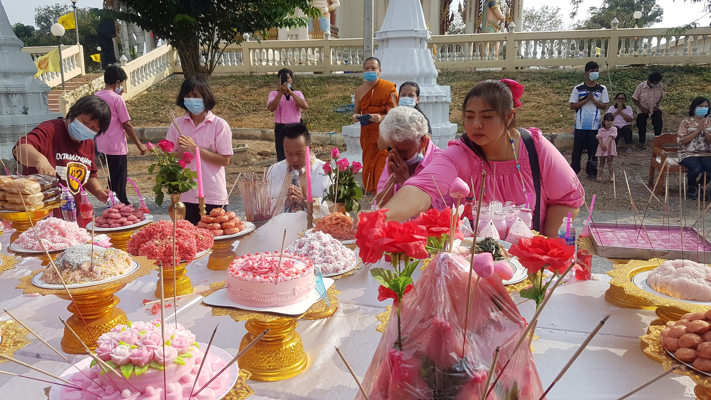 วันวาเลนไทน์ ประชาชนและนักท่องเที่ยว แห่ร่วมงานครบรอบ 10 ปี วันเกิดหลวงพ่อสีชมพู และวันวาเลนไทน์ วันแห่งความรัก ผู้มาร่วมงานทุกคนรับแจกผ้ายันต์หลวงพ่อสีชมพู ยันต์คุ้มภัย โควิด19 รุ่นแรก สำหรับผู้ที่เกิดวันที่ 14 กุมภาพันธ์ รับแจกล็อกเก็ตหลวงพ่อสีชมพู ประดับพลอย รุ่นแรก เพื่อความเป็นสิริมงคล ได้ตั้งแต่วันที่ 14-28 กุมภาพันธ์ ให้นำบัตรประชนมาแสดง