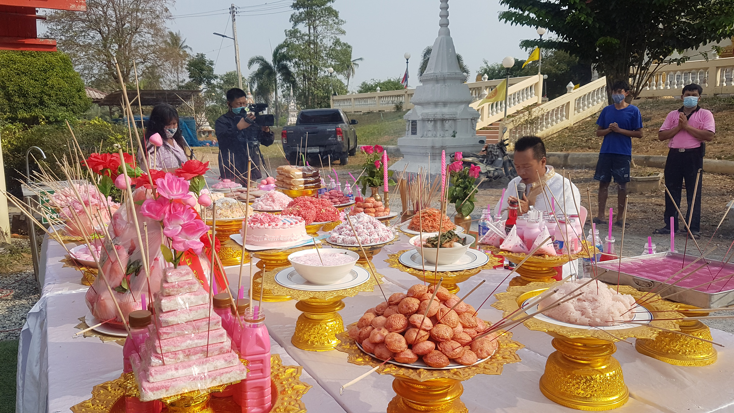 ที่วัดเถรพลาย ต.วังน้ำซับ อ.ศรีประจันต์ จ.สุพรรณบุรี ประชาชน และนักท่องเที่ยว คู่รักวัยรุ่น คู่หนุ่มสาว คู่พ่อลูก คู่แม่ลูก คู่พี่น้อง และเยาวชน ร่วมพิธีบวงสรวง ครบรอบ 10 ปี วันเกิดหลวงพ่อสีชมพู วันที่ 14 กุมภาพันธ์ วันวาเลนไทน์ หรือวันแห่งความรัก และกราบไหว้ขอพรหลวงพ่อสีชมพู พระพุทธรูปศักดิ์สิทธิ์ ด้านความรัก ความสามัคคีและโชคลาภ ซึ่งได้นำอาหาร คาวหวาน ผลไม้ เครื่องดื่ม กว่า 20 อย่าง ทั้งหมดเป็นอาหารที่มีสีชมพู เช่น ขนมเค้กสีชมพู ขนมโดนัดสีชมพู ผัดหมี่สีชมพู ก๋วยเตี๋ยวเย็นตาโฟสีชมพู ขนมครกสีชมพู ( ค ร ก ) หรือ ขนม คน รัก กัน ขนมลูกชุป ขนมชั้น ขนมถ้วยฟู ขนมถั่วแปปสีชมพู สลิ่มสีชมพู ซาลาเปา ซาลาเปาลูกท้อ ขนมเปี๊ย ขนมกุ่ยฉ่าย ดอกกุกราบสีชมพู และน้ำนมเย็นสีชมพู อาหารอื่น ๆ ที่เป็นสีชมพูอีกมากมาย มาบวงสรวงและถวายหลวงพ่อสีชมพู ซึ่งมีประชาชนและนักท่องเที่ยว ต่างนำอาหารคาวหวาน และดอกกุหลาบมาถวายหลวงพ่อสีชมพูในวันเลนไทน์ วันแห่งความรัก กันอย่างต่อเนื่อง