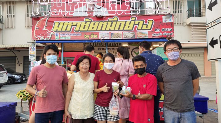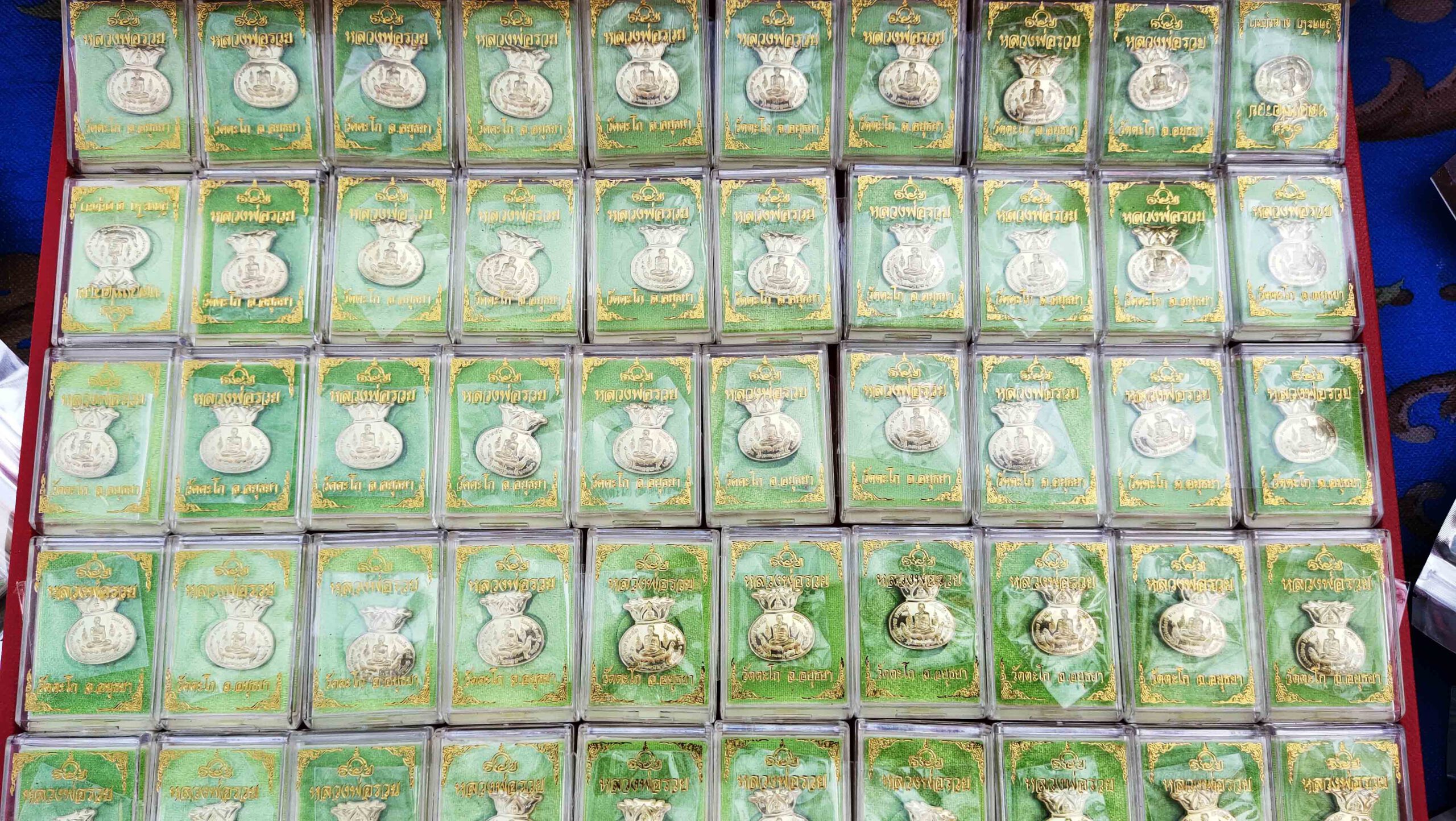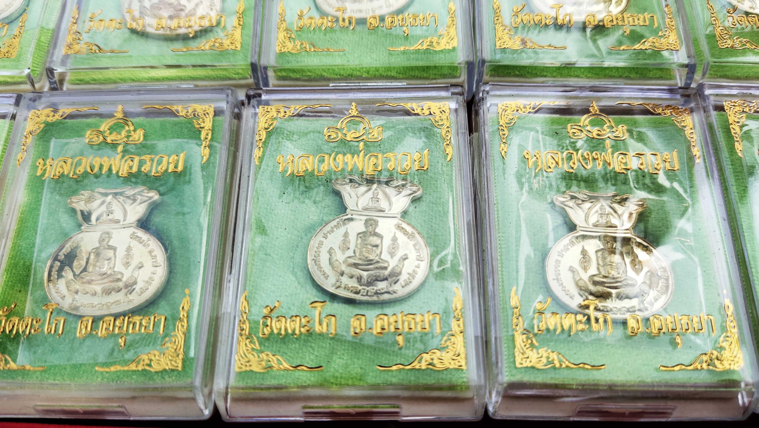 ที่ร้านมหาชัยหมึกย่าง บาย ช้าง หรือร้านเฮียช้างหมึกย่าง ริมถนนมาลัยแมน หน้าหมู่บ้านยิ่งรวยพรีเมียร์ เทศบาลเมืองสุพรรณบุรี ซึ่งคุณศุภชัย บุญเกิดศรี เจ้าของร้านเปิดเผยว่าที่ผ่านมาขายปลาหมึกย่างตามตลาดนัดทั่วไป กระทั่งมาประสบปัญหาโควิด19 ระบาด จึงต้องหยุดขาย ขาดรายได้ไปหลายเดือน ล่าสุดได้มาเปิดขายหน้าหมู่บ้านยิ่งรวยพรีเมียร์ เทศบาลเมืองสุพรรณบุรี ตั้งแต่วันที่ 1 กุมภาพันธ์ ที่ผ่านมาพร้อมกับได้นำพระเครื่องเหรียญหลวงพ่อรวย วัดตะโก รุ่นขวัญถุง หรือถุงเงินถุงทอง เนื่องครอบครัวตนเองเครารพนับถือหลวงพ่อรวย และเป็นลูกศิษย์หลวงพ่อรวยด้วย จึงนำเหรียญหลวงพ่อรวยมาแจกให้กับลูกค้าที่มาอุดหนุนตั้งแต่ 20 บาท ที่สำคัญลูกค้าต้องมาเป็นคู่ ได้ทั้งคู่รักทั้งหนุ่มสาว สามีภรรยา พ่อแม่ พี่น้อง พ่อลูก แม่ลูก คู่ซี้เพื่อนกัน คู่รัก ทุกเพศทุกวัย ช่วงเทศกาลแห่งความรัก วันละ 8 เหรียญ หรือ 8 คู่รัก จนถึงวันที่ 14 กุมภาพันธ์ วันวาเลนไทน์ หรือวันแห่งความรัก