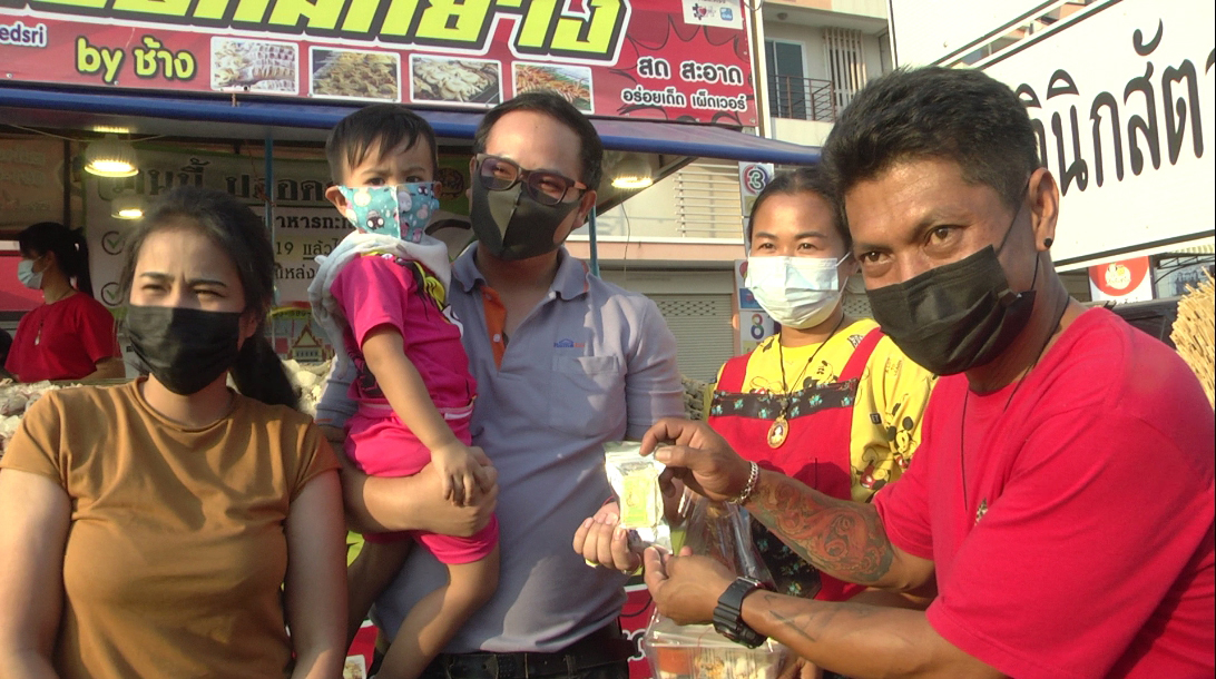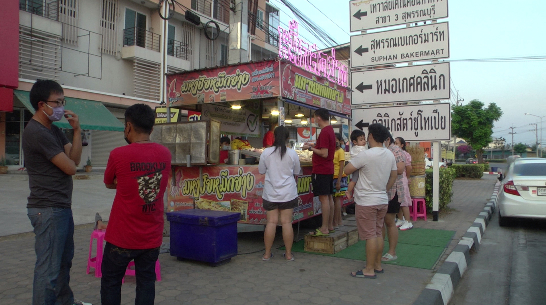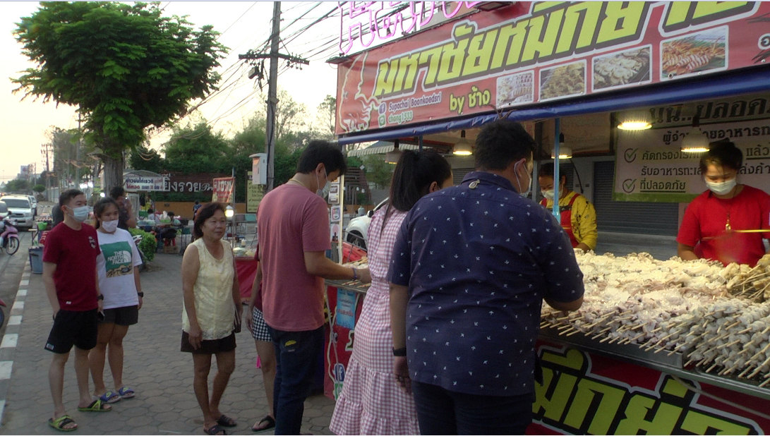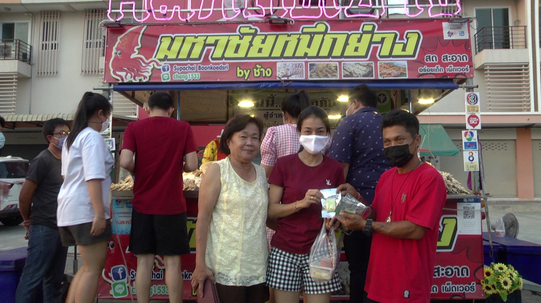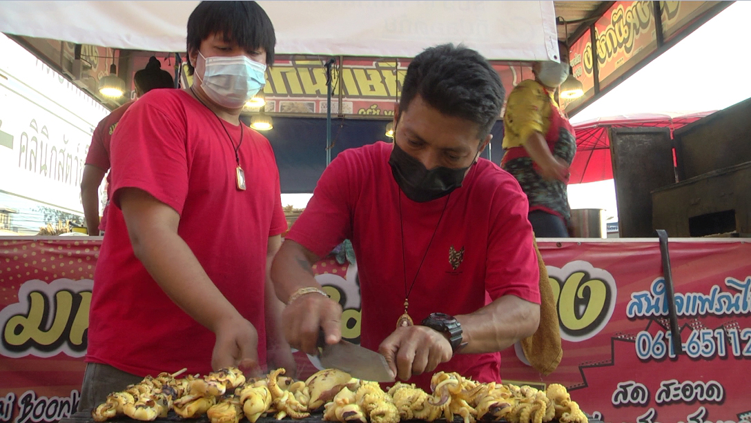 สุพรรณบุรี วันแห่งความรักลูกค้าควงคู่แห่ซื้อหมึกย่างรับแจกหลวงพ่อรวยคึกคัก