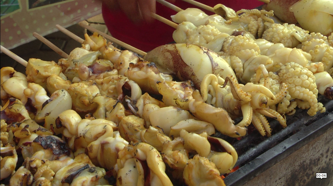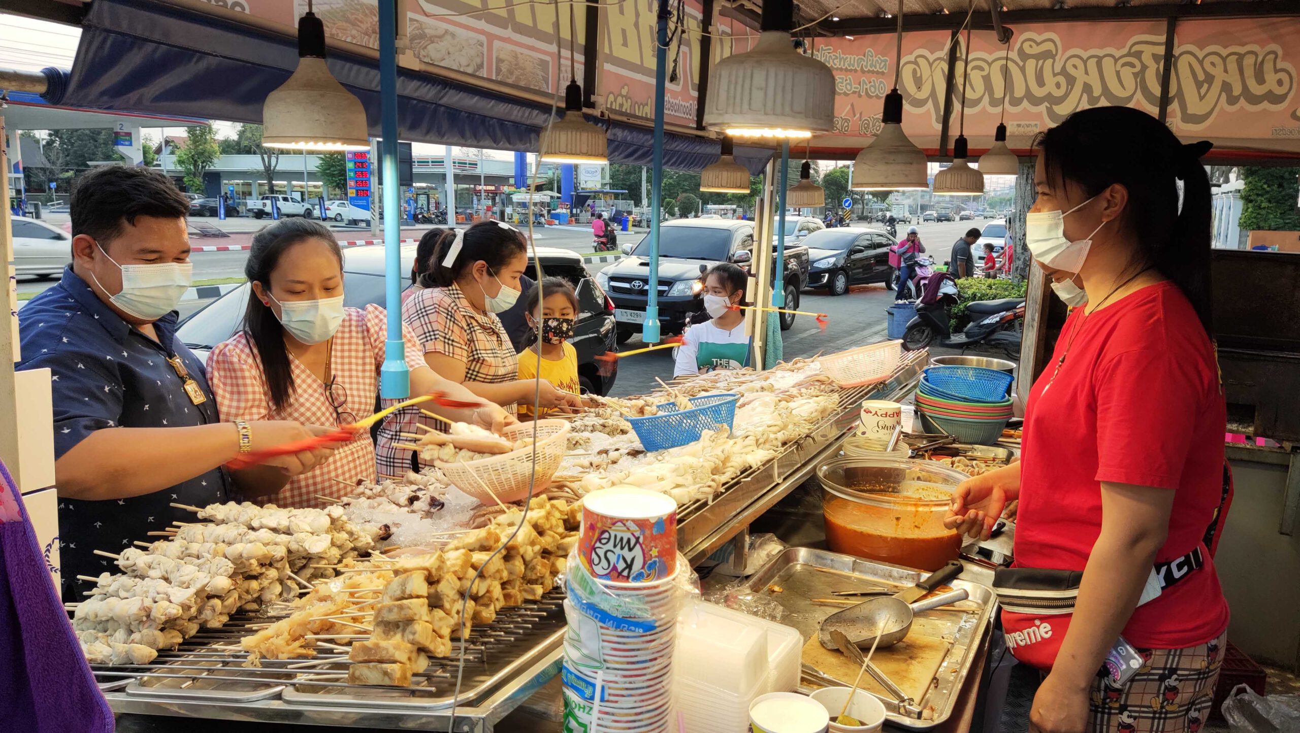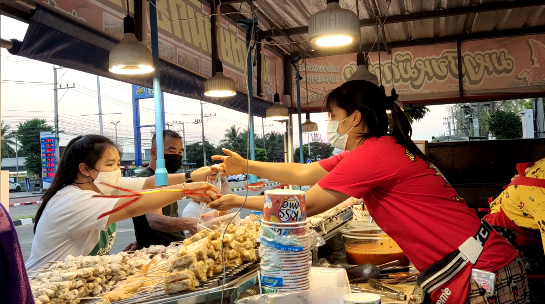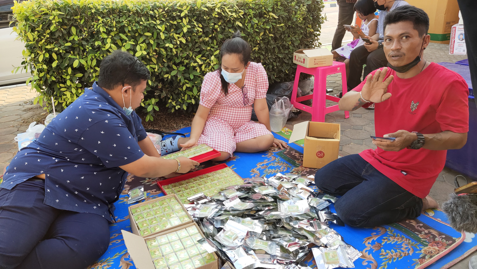 สุพรรณบุรี วันแห่งความรักลูกค้าควงคู่แห่ซื้อหมึกย่างรับแจกหลวงพ่อรวยคึกคัก