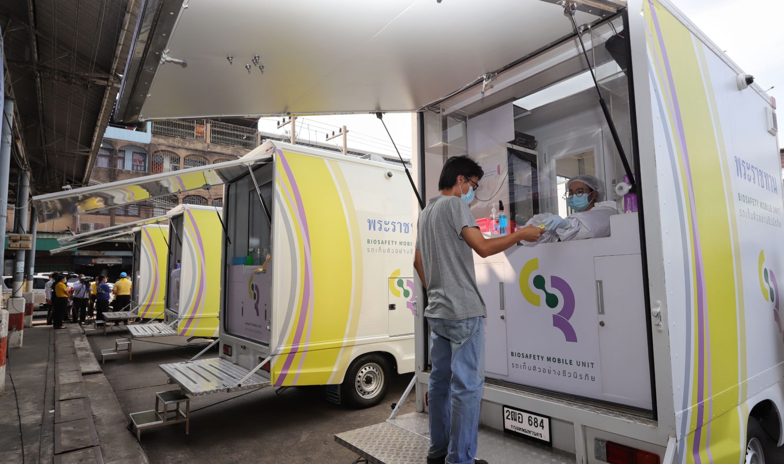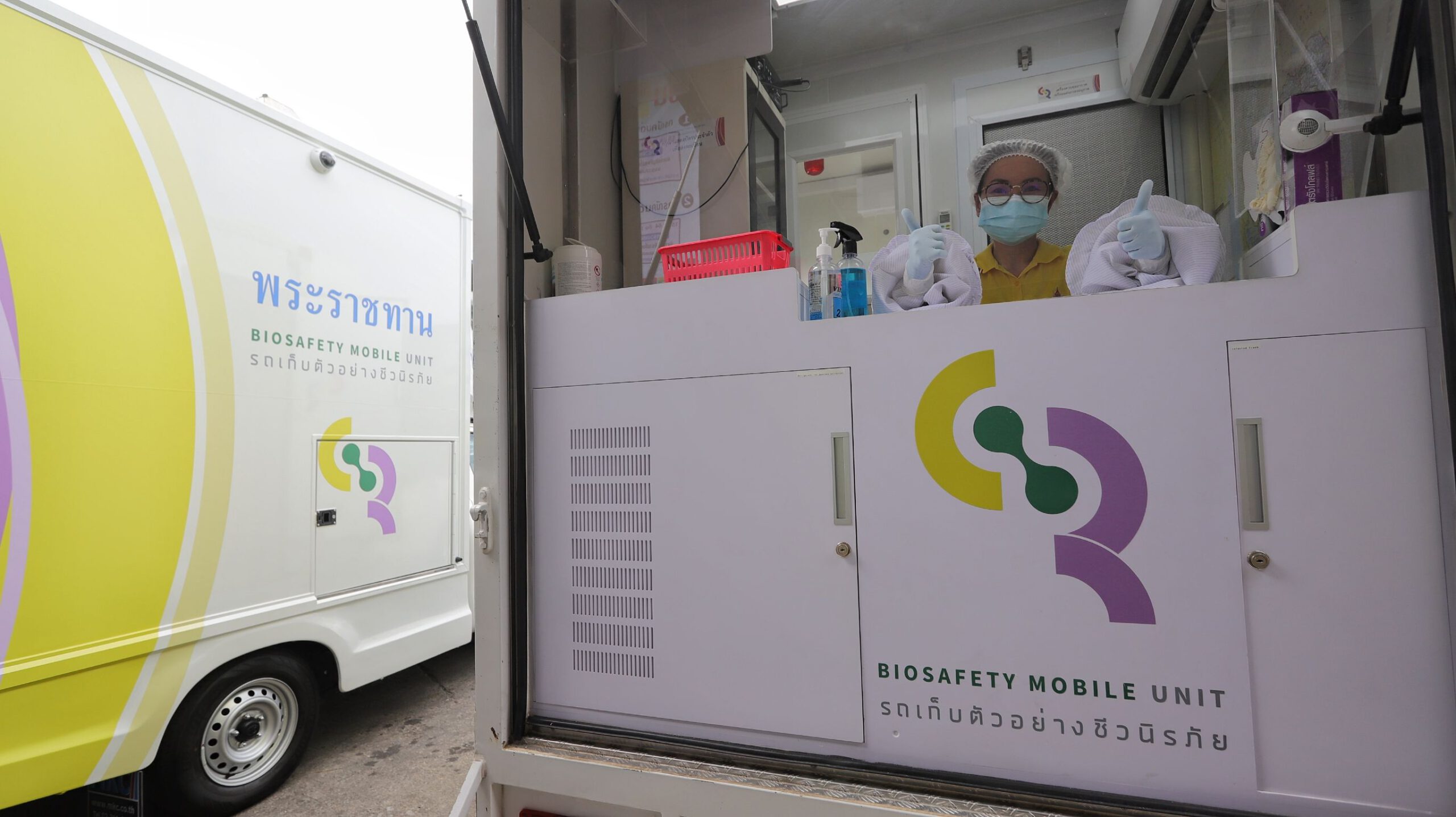 สำหรับรถตรวจโรคติดเชื้อชีวนิรภัย พระบาทสมเด็จพระเจ้าอยู่หัว พระราชทานรถตรวจโรคติดเชื้อชีวนิรภัย จำนวน 13 คัน เพื่อกระทรวงสาธารณสุขนำไปใช้ประโยชน์ ณ สำนักงานเขตสุขภาพ ที่ 1-12 ทั่วประเทศ และเขตพื้นที่กรุงเทพมหานคร ที่กระทรวงสาธารณสุข ดูแลรับผิดชอบเพื่อใช้เป็นห้องปฏิบัติการเคลื่อนที่ในการเก็บ ตัวอย่างโรคติดเชื้อไวรัสโคโรนา 2019(COVID-19) ให้แก่ประชาชนในพื้นที่ต่างๆ ได้อย่างรวดเร็ว