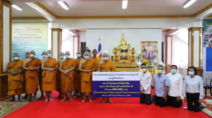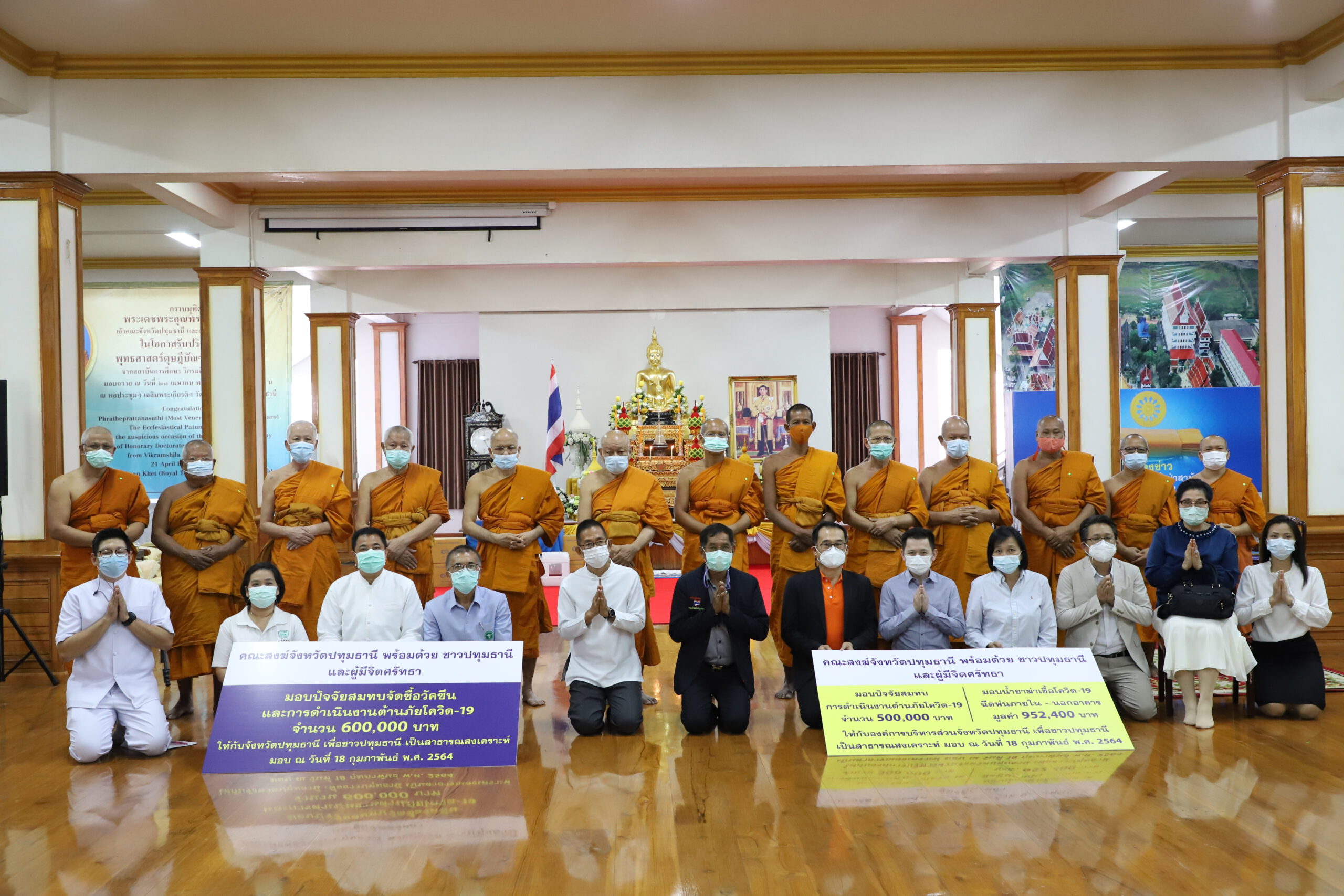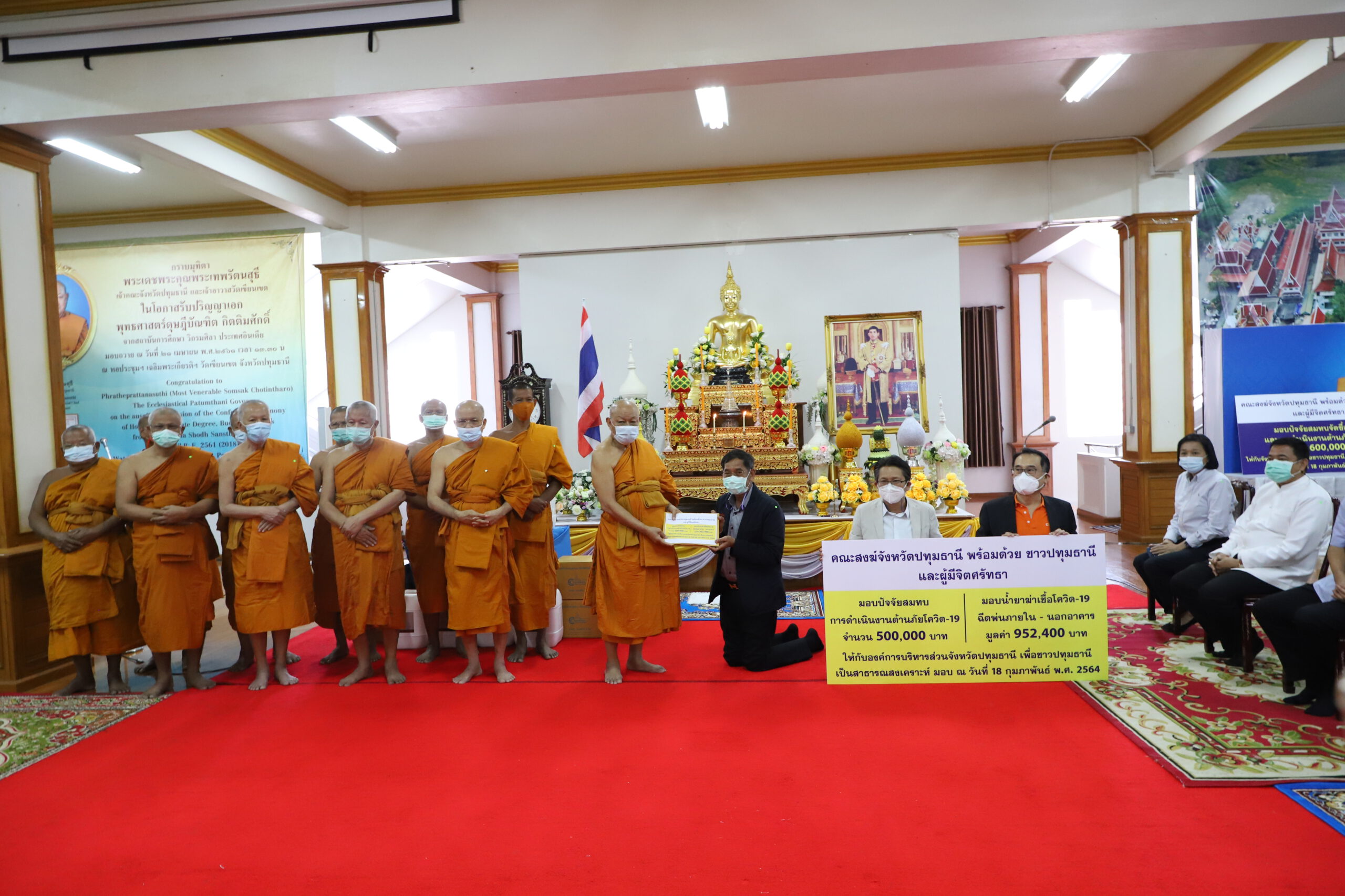 คณะสงฆ์จังหวัดปทุมธานี ร่วมกับชาวปทุมธานี มอบปัจจัย-น้ำยาฆ่าเชื้อ รวมศรัทธาทอดผ้าป่ากว่า 2 ล้านบาท สมทบต้านภัยโควิด-19 เพื่อชาวปทุมฯ