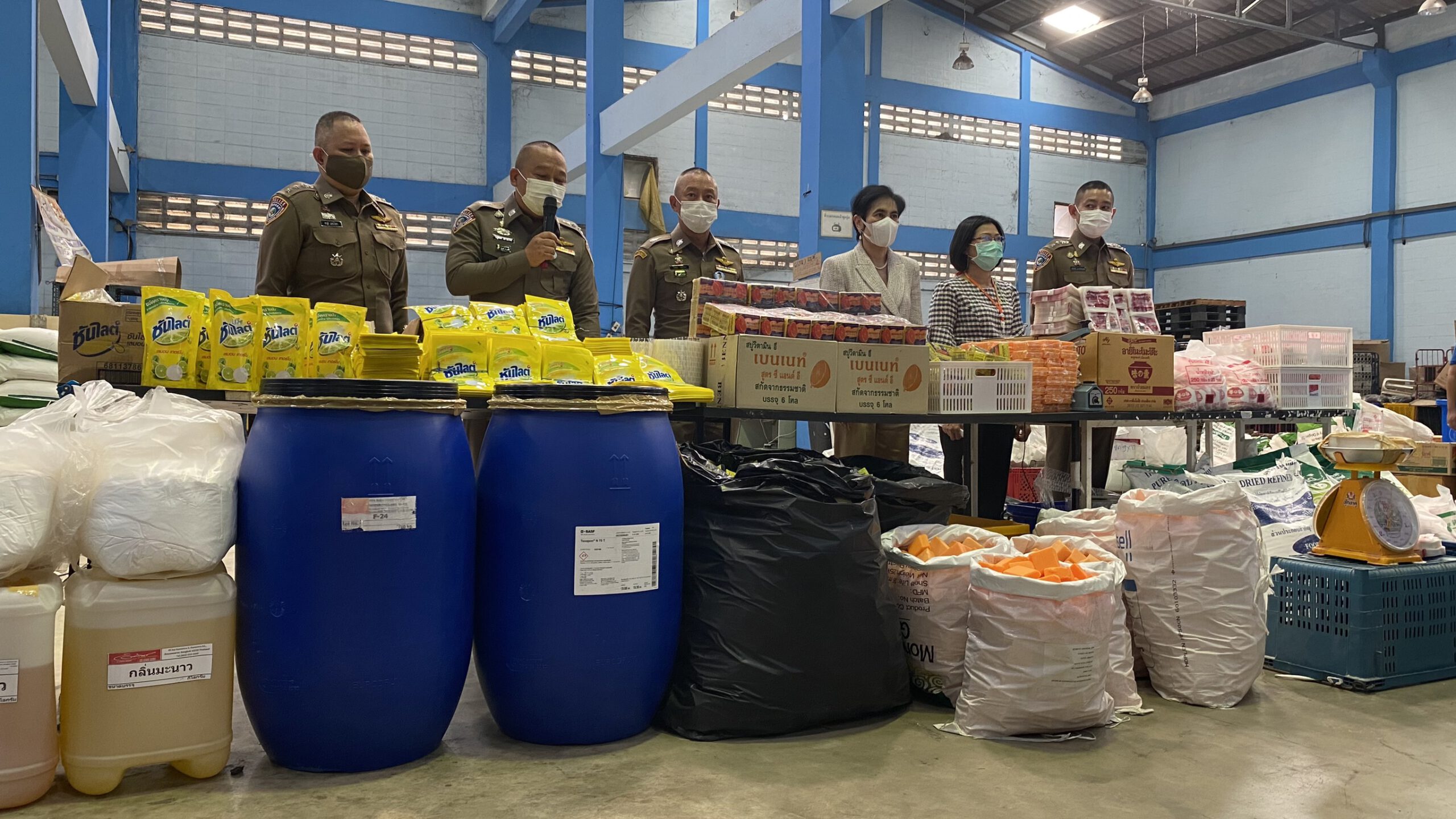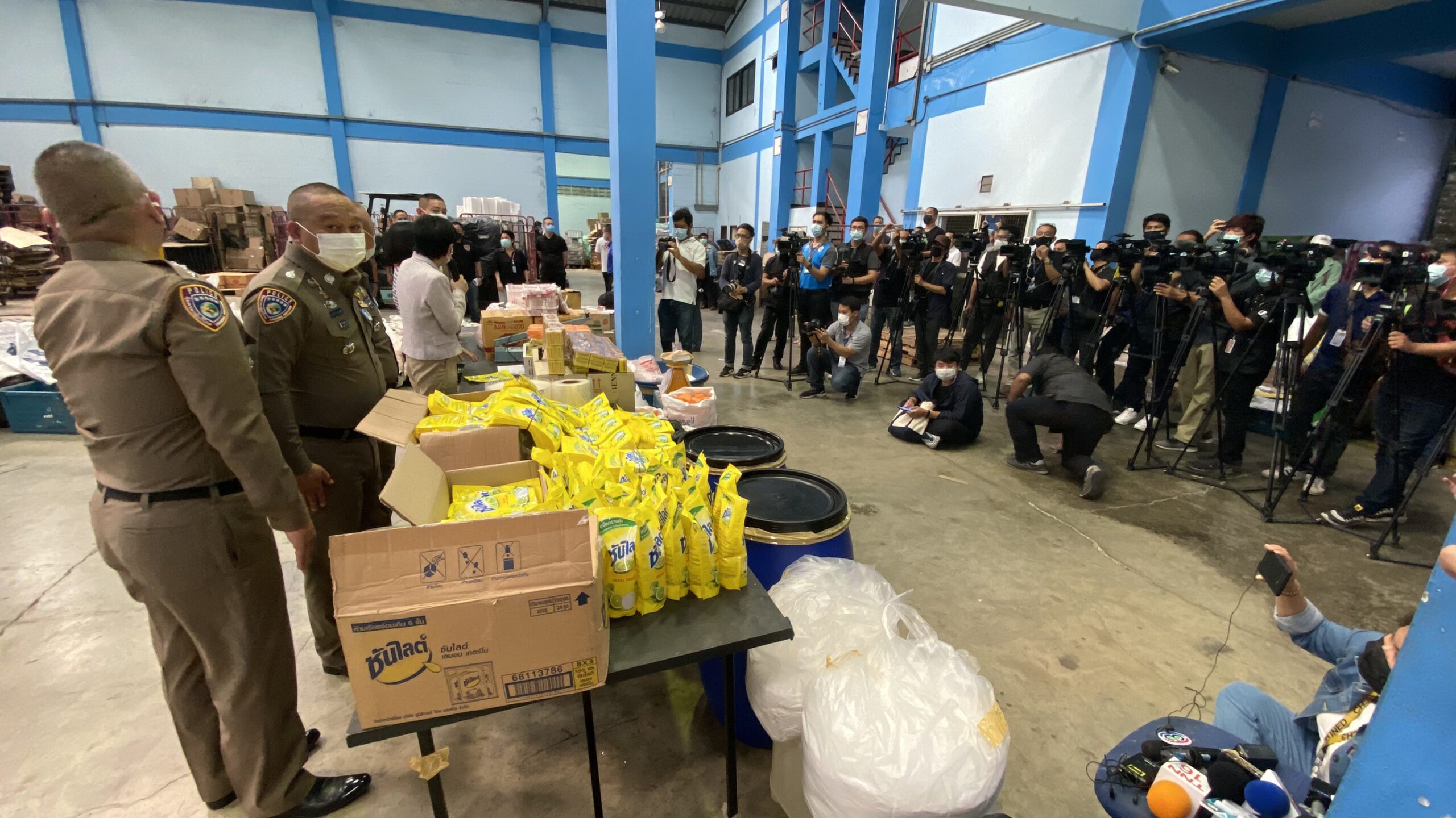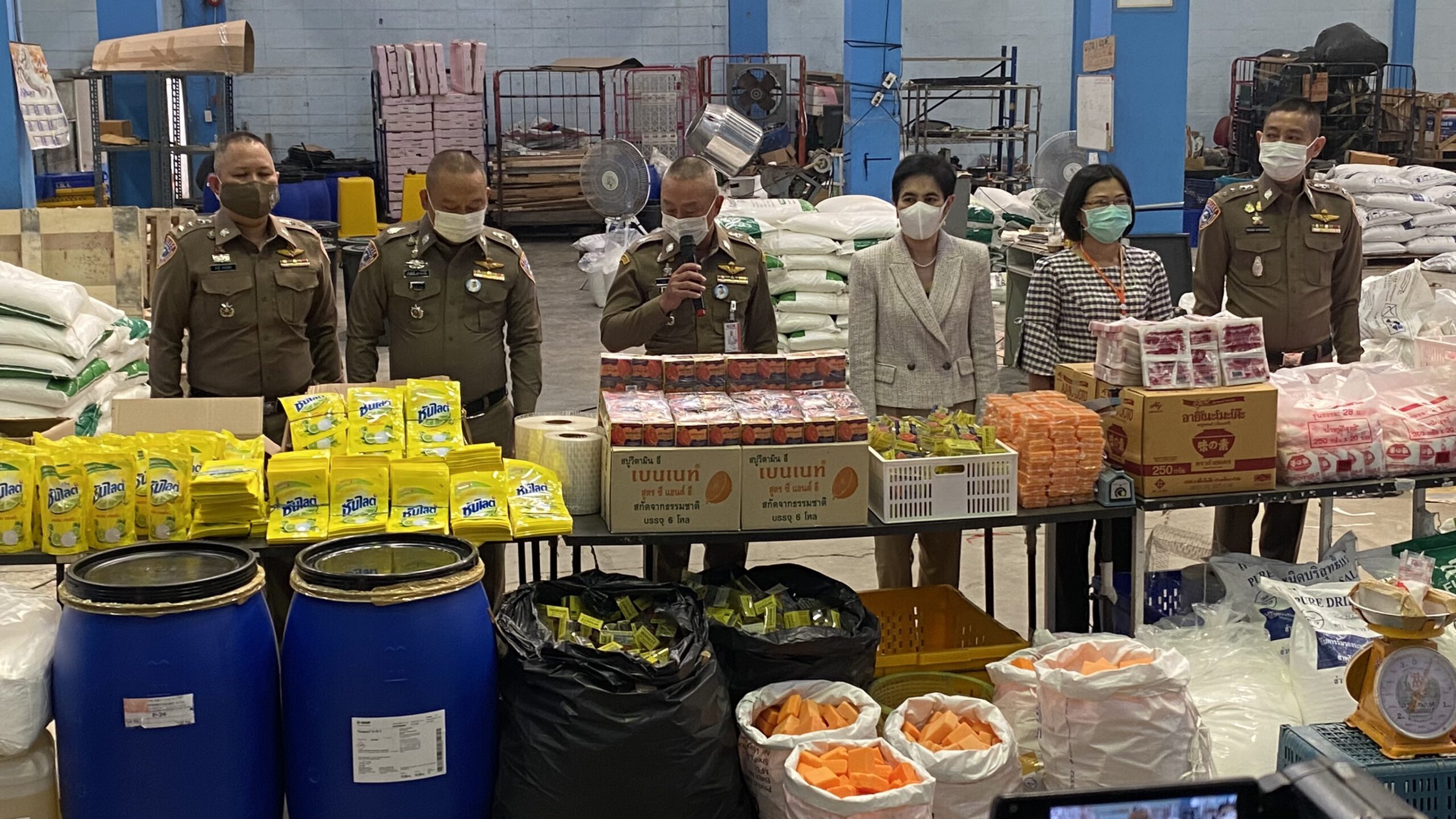 ปคบ ร่วมกับ อย.ทลายโรงงานเถื่อนลักลอบผลิตผงชูรส น้ำยาล้างจาน และสบู่ สวมยี่ห้อดัง ย่านลำลูกกา ส่งขายชายแดนใต้