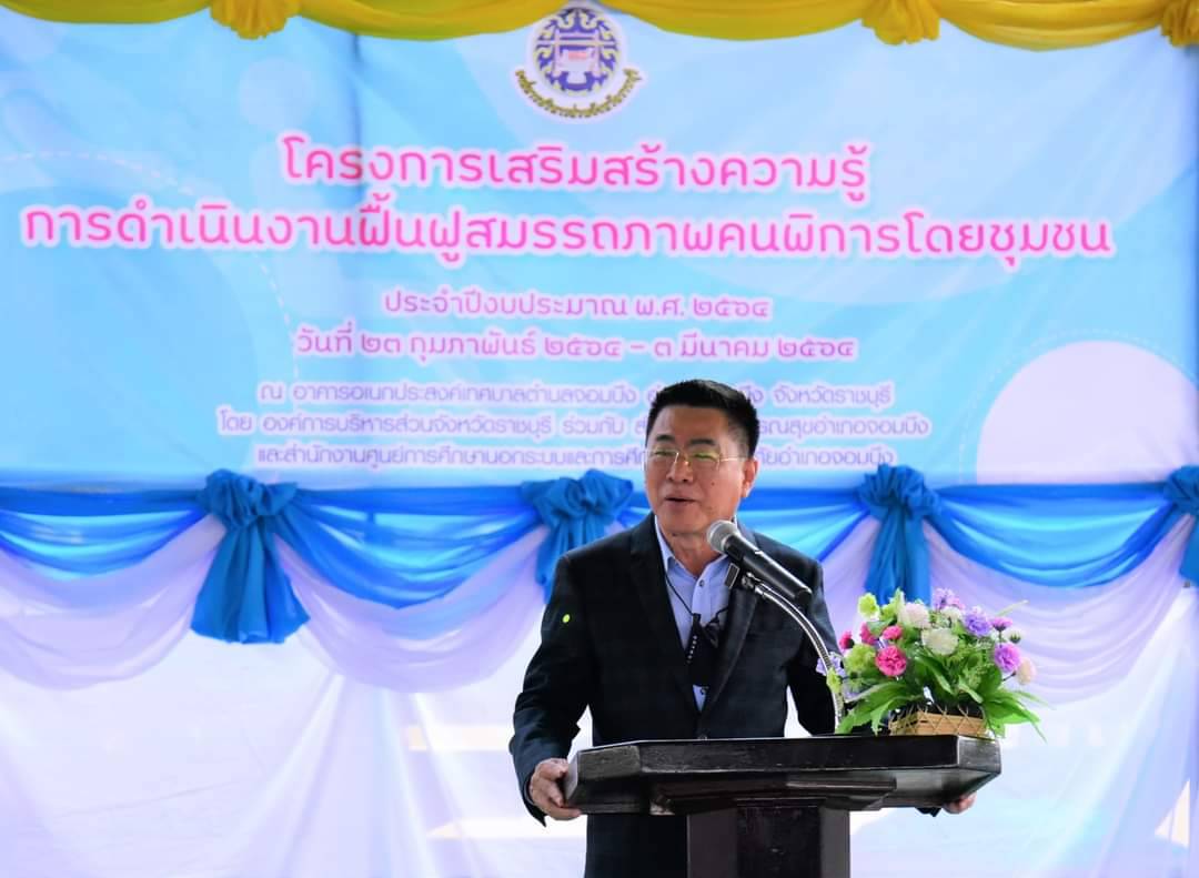 เมื่อเช้าวันที่ 23 กุมภาพันธ์ 2564 นายวิวัฒน์ นิติกาญจนา นายก อบจ.ราชบุรี เป็นประธานเปิดโครงการเสริมสร้างความรู้การดำเนินงานฟื้นฟูสมรรถภาพคนพิการโดยชุมชน มีนายพลกฤต พวงวลัยสิน นายอำเภอจอมบึงให้การต้อนรับ มีสมาชิกสภาองค์การบริหารส่วนจังหวัดราชบุรี เลขานุการนายก อบจ.ราชบุรี ห้วหน้าส่วนราชการในเขตพื้นที่อำเภอจอมบึงและในสังกัด อบจ.ราชบุรี ร่วมเป็นเกียรติพิธีเปิดโครงการดังกล่าว มีนายจักณรินทร์ โจมหาร หัวหน้าสำนักปลัดองค์การบริหารส่วนจังหวัด เป็นผู้กล่าวรายงานวัตถุประสงค์ของการจัดโครงการครั้งนี้ เพื่อส่งเสริมให้คนพิการหรือผู้ดูแลคนพิการหรือผู้ที่เกี่ยวข้องได้มีกิจกรรมทางสังคม มีอาชีพ มีรายได้และมีคุณภาพชีวิตที่ดี ไม่ถูกทอดทิ้งอีกต่อไป
