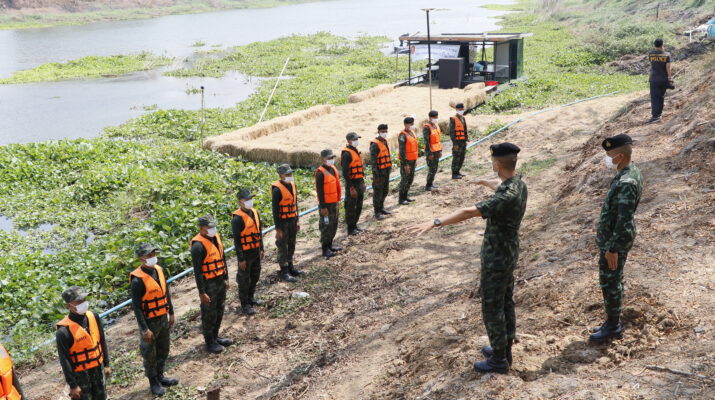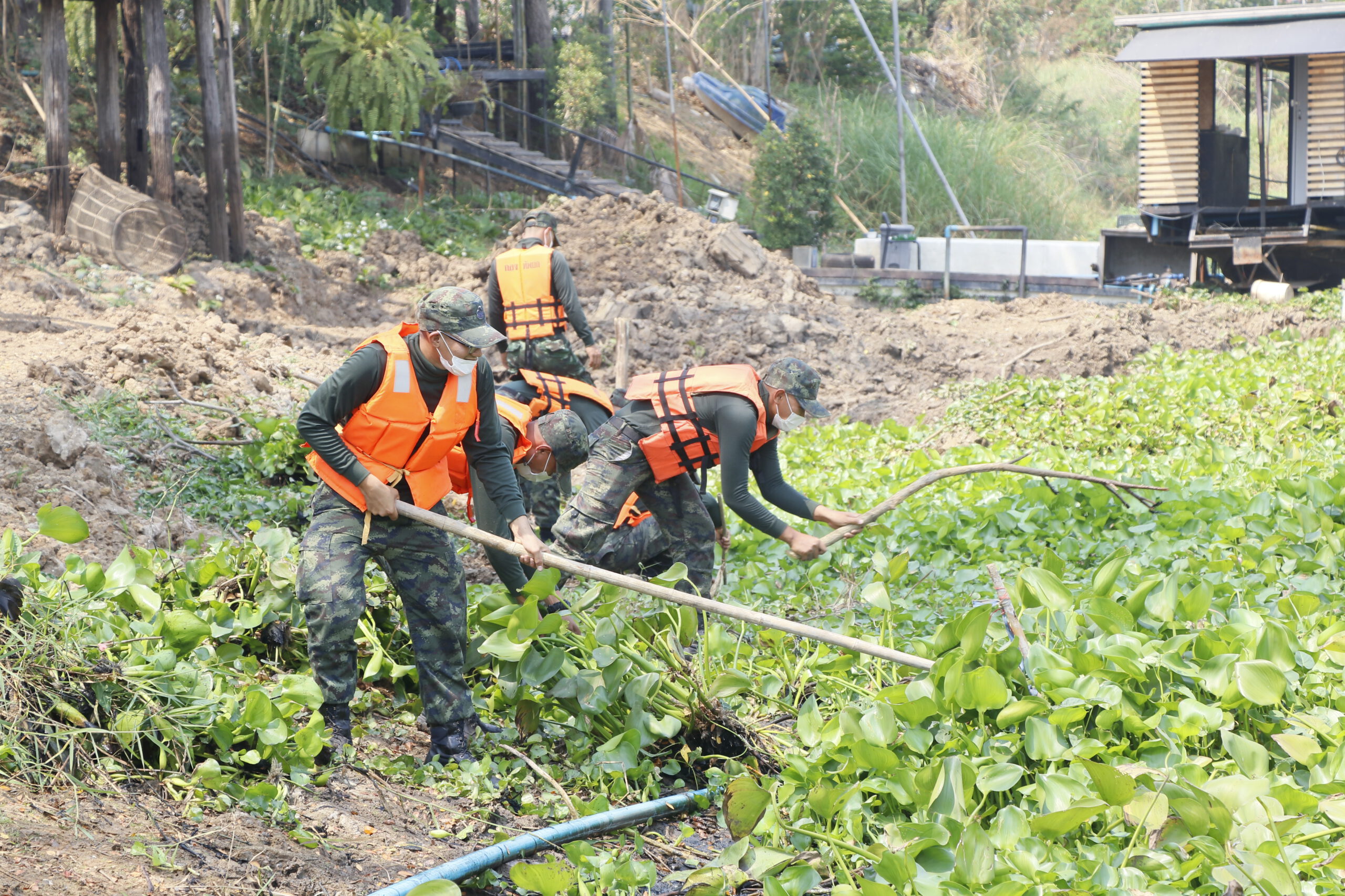 ต่อจากนั้น ผบ.ป.พัน.712 ได้นำกำลังทหาร พร้อมเจ้าหน้าที่อบต.แม่ลาและนักศึกษา ร่วมกันทำความสะอาดลำน้ำแม่ลาแหล่งกำเนิดปลาช่อนแม่ลาที่มีชื่อเสียงของจังหวัดสิงห์บุรี โดยการ จัดเก็บผักตบชวาและวัชพืช สร้างความตื้นเขินเน่าเหม็นในแหล่งกักเก็บน้ำกีดขวางทางระบายน้ำของลำน้ำแม่ลา บริเวณวัดแหลมคาง ทำให้น้ำระบายได้ดีขึ้นและทัศนียภาพมีความสวยงามน่าท่องเที่ยวอีกด้วย ซึ่งเป็นกิจกรรมส่งเสริมให้ประชาชนได้มี ส่วนร่วมในการบําเพ็ญสาธารณประโยชน์ ร่วมมือร่วมใจทําความดีของชุมชน และสังคมขนาดเล็กในแต่ละพื้นที่ตาม ลักษณะภูมิสังคม และวัฒนธรรม สอดคล้องกับแนวทางการเสริมสร้างความมั่นคงสถาบันหลักของชาติ ทั้งนี้แผนการ รักษาความสงบภายในประเทศ ภายใต้ยุทธศาสตร์ชาติด้านความมั่นคง