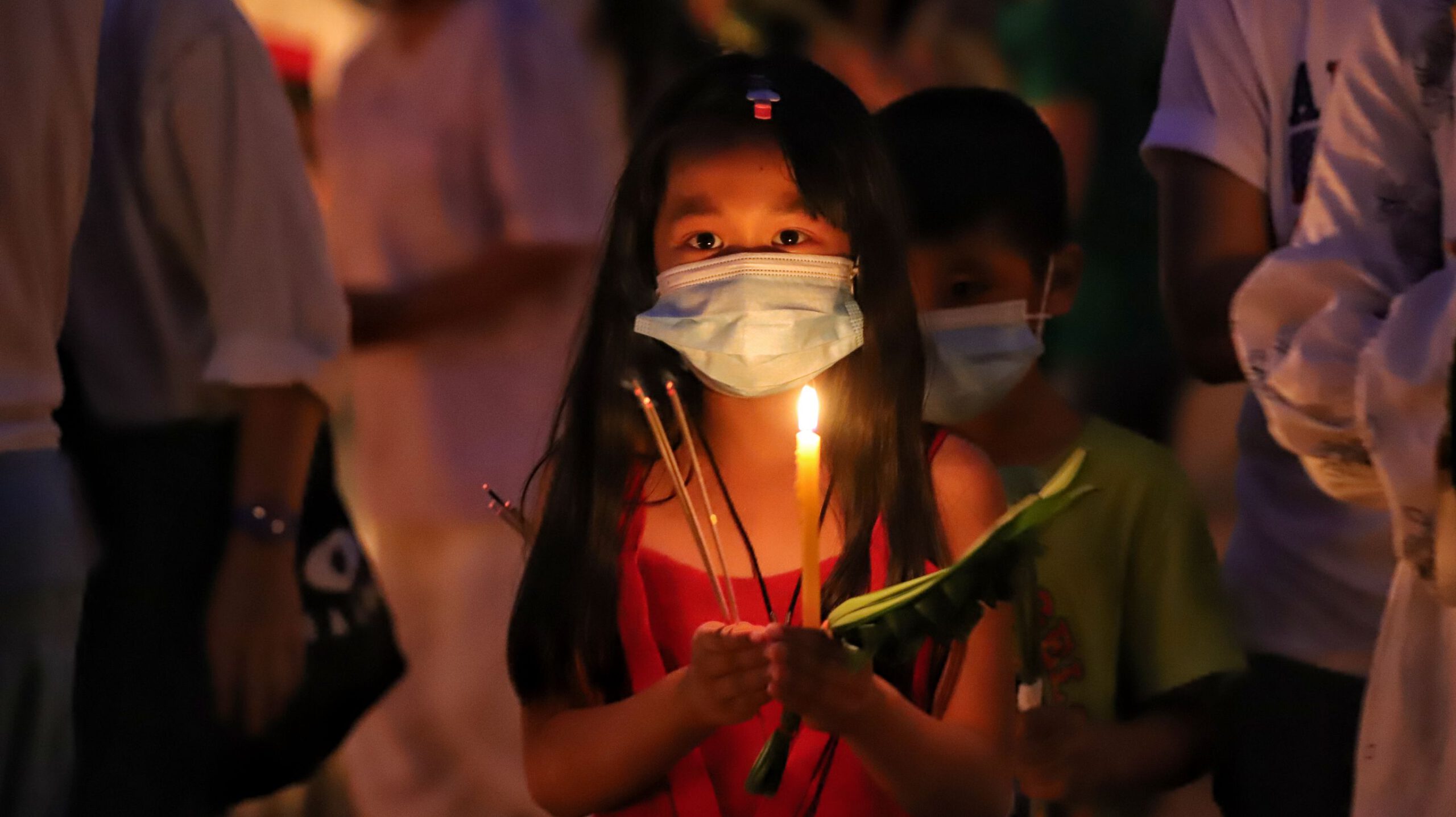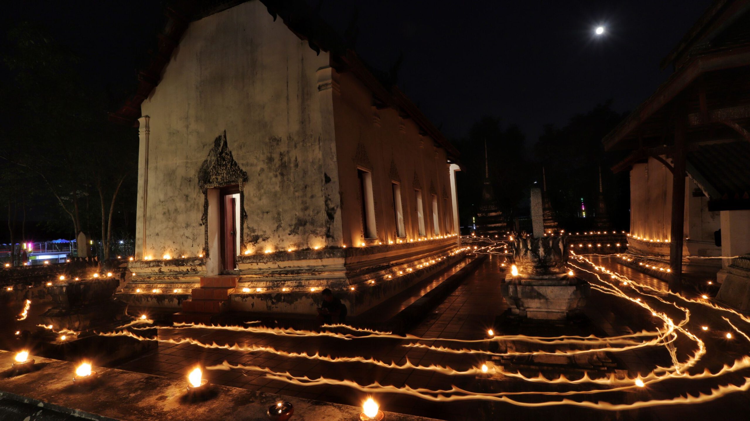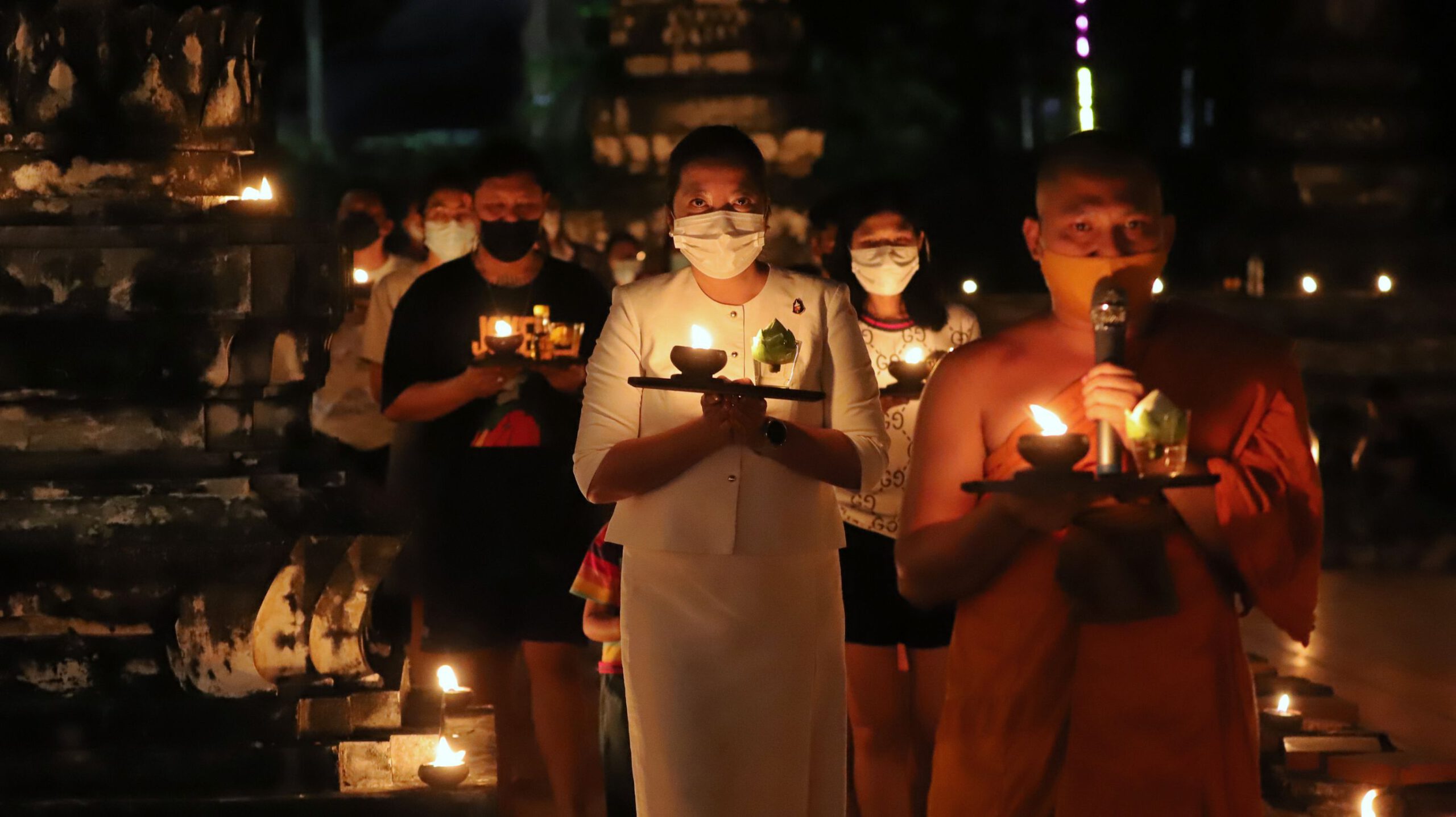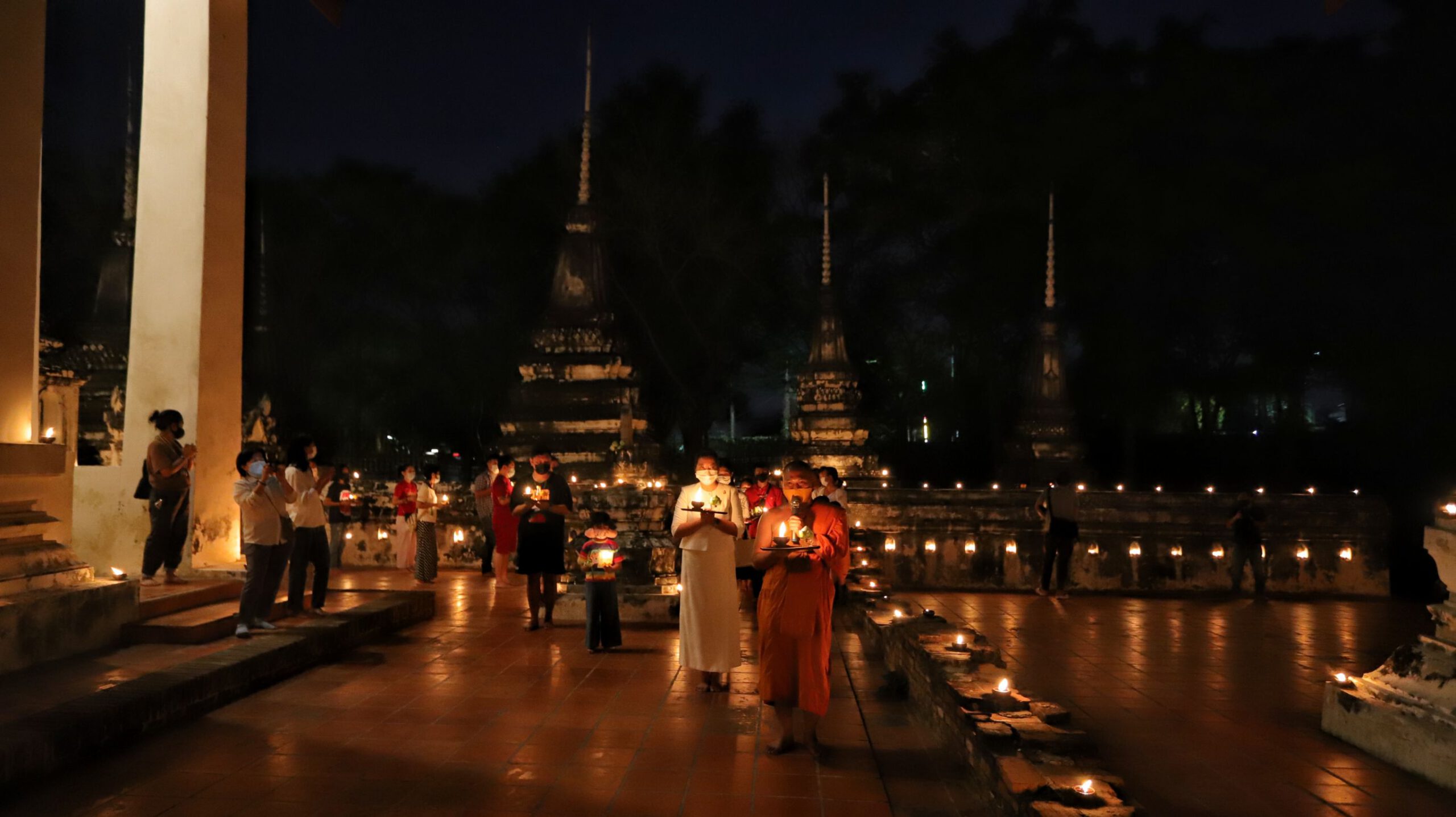 พุทธศาสนิกชนพาครอบครัวเวียนเทียนพร้อมจุดประทีปรอบอุโบสถเก่าแก่วัดสิงห์สามโคกถวายเป็นพุทธบูชาวันมาฆบูชา