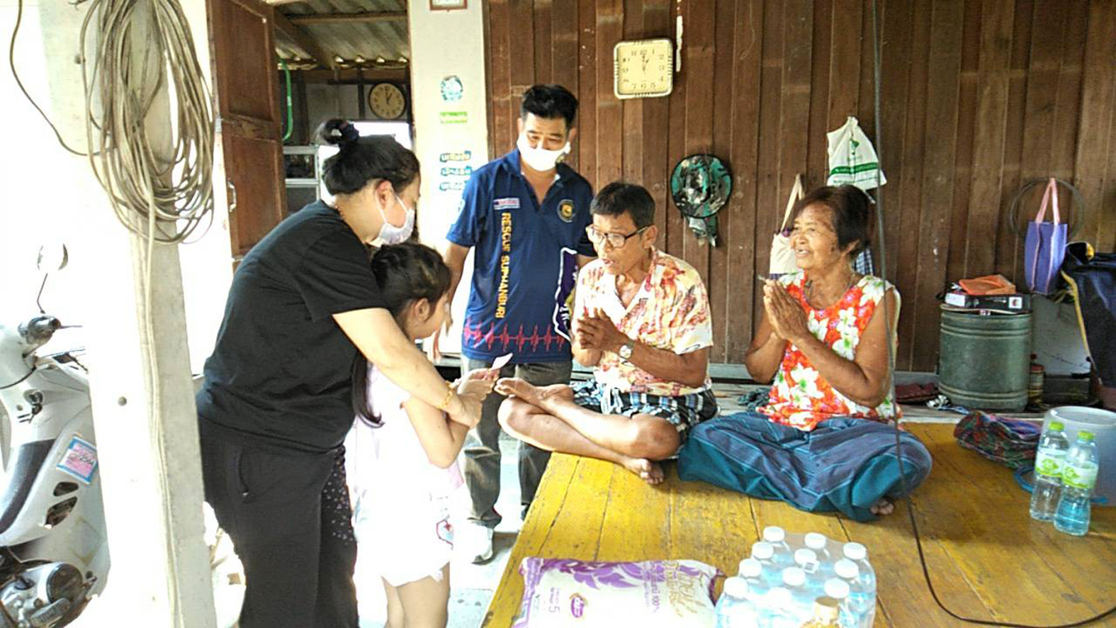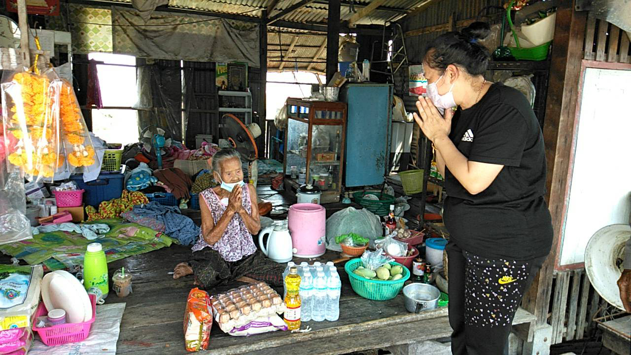 สุพรรณบุรี สาวขายส่งเสื้อผ้าใจบุญร่วมรพ.สต.อสม.มอบสิ่งของให้ผู้ป่วยพิการยากไร้