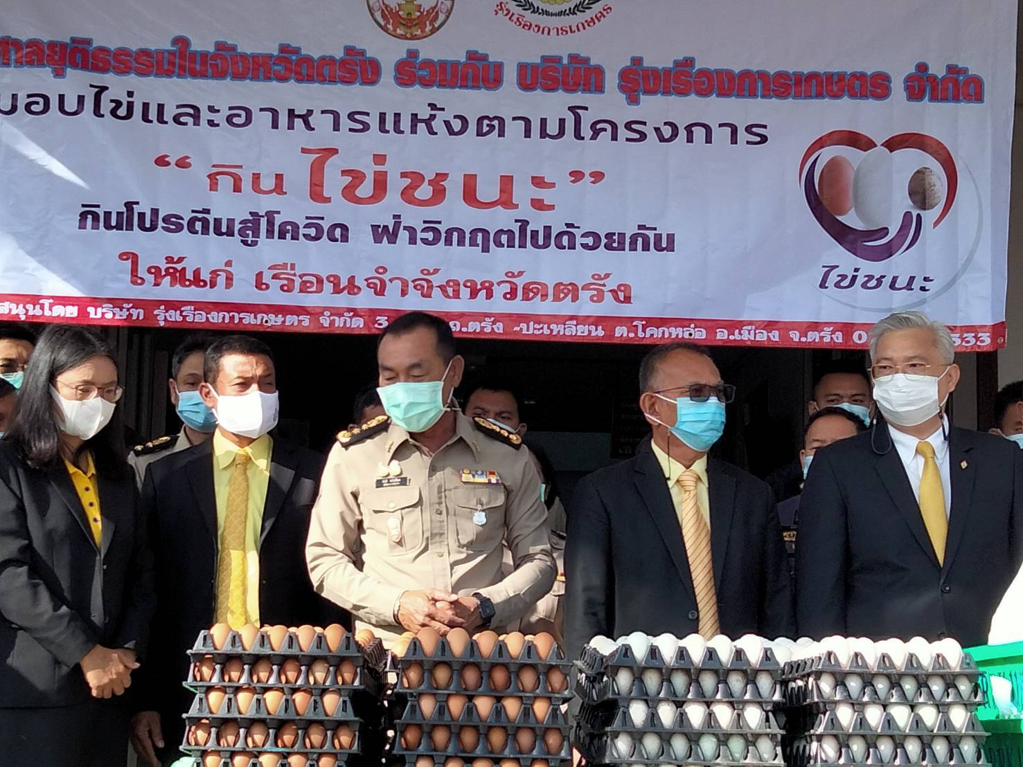 ศาลยุติธรรมในจังหวัดตรัง จัดกิจกรรมในโครงการ CSR “โครงการ กินไข่ชนะ” กินโปรตีนสู้โควิด มอบไข่เป็ด ไข่ไก่ ไข่นกกระทา และข้าวสาร แก่เรือนจำจังหวัดตรัง และ สถานพินิจและคุ้มครองเด็กและเยาวชนจังหวัดตรัง