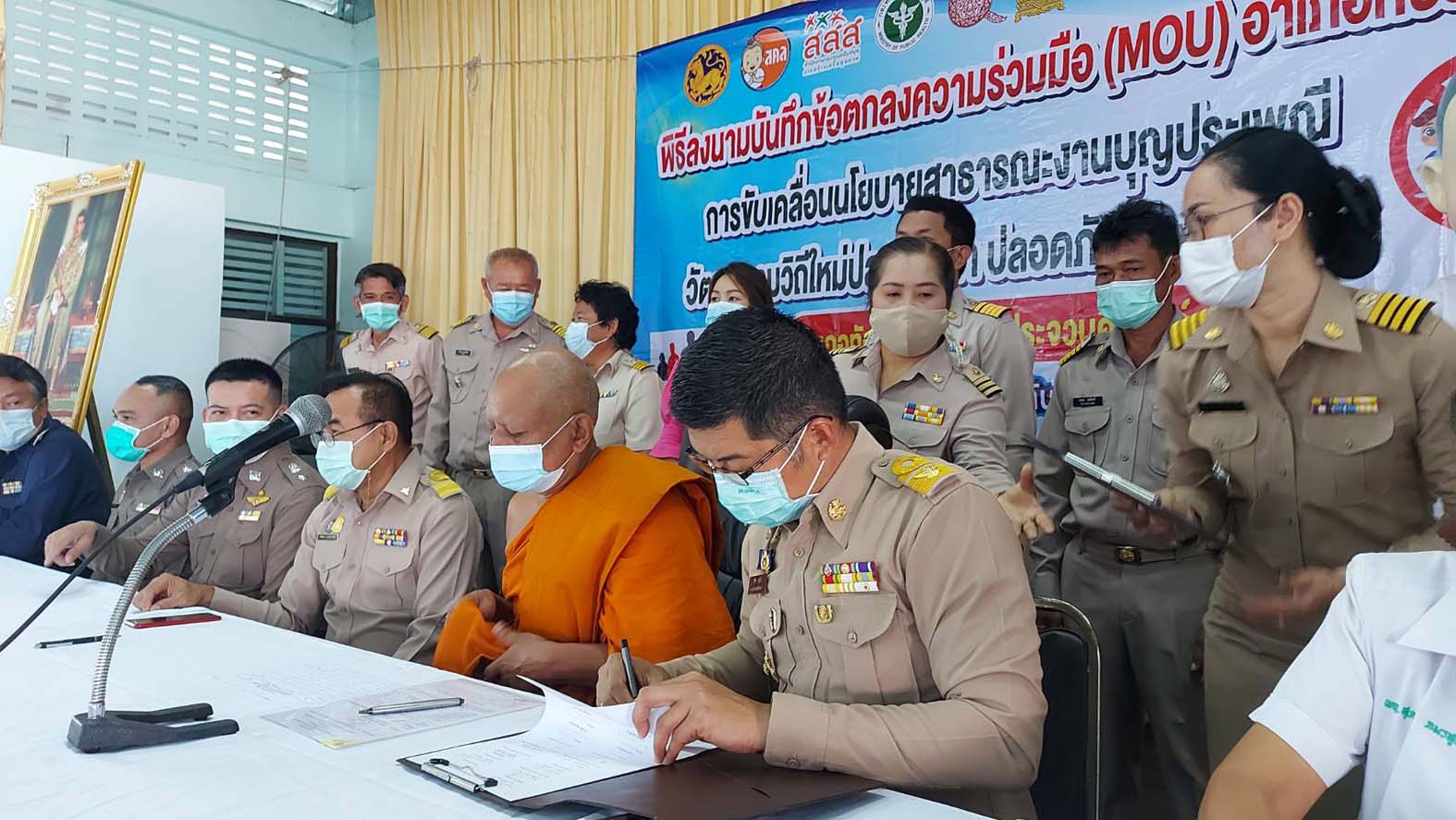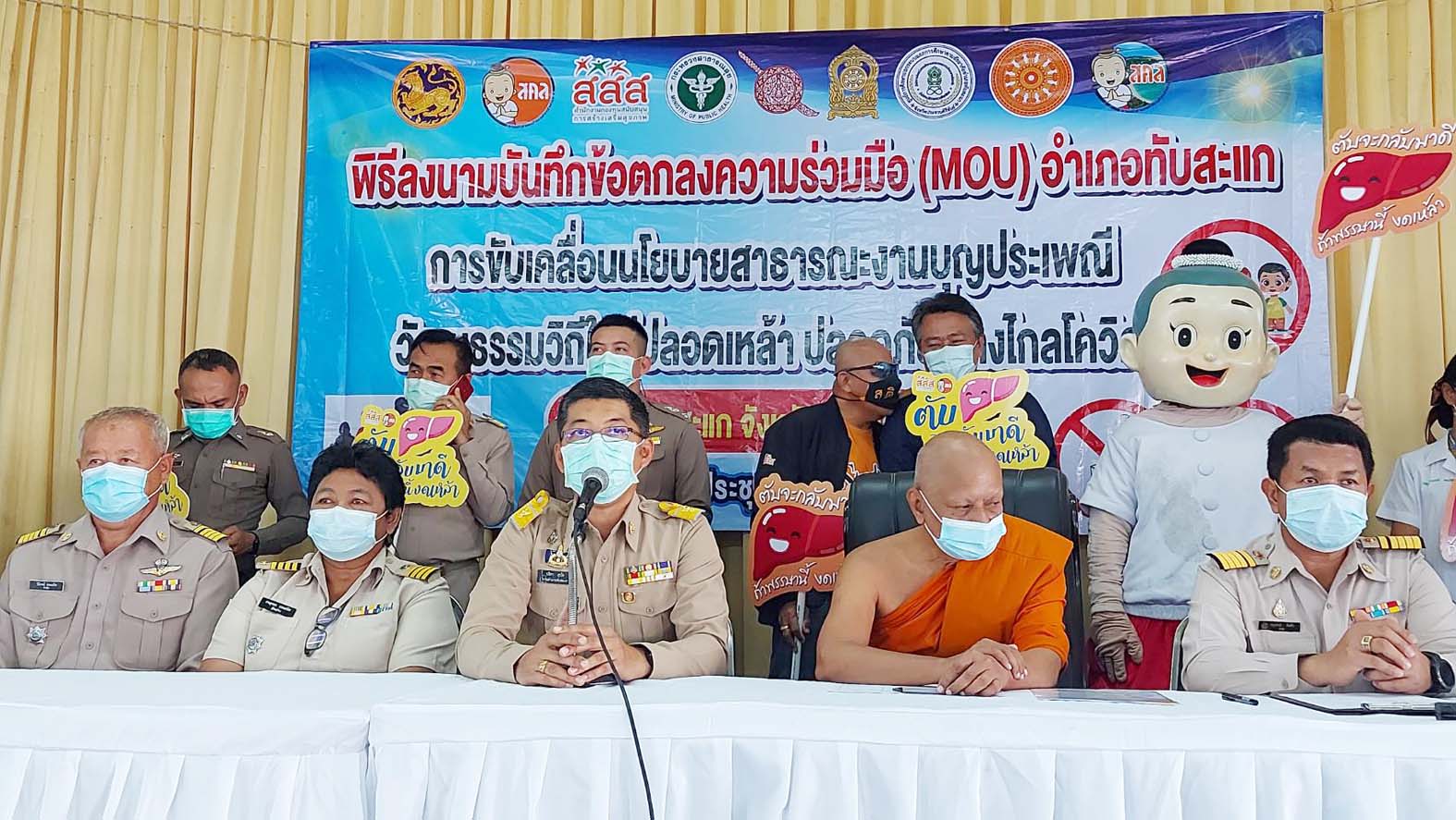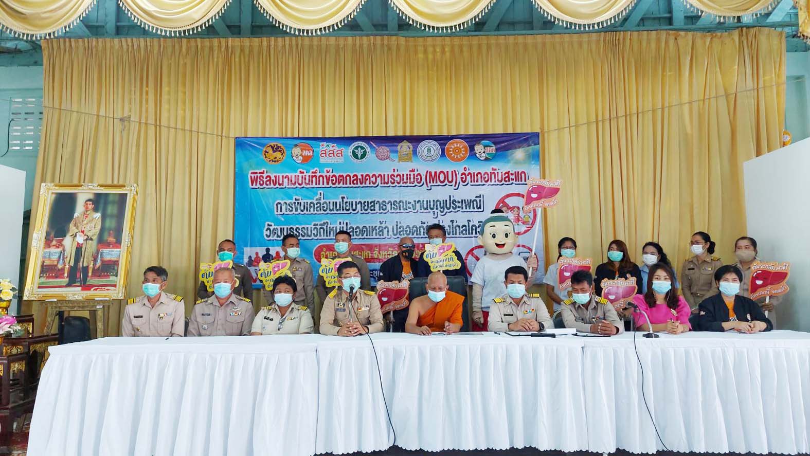 อำเภอทับสะแกทำ MOU ขับเคลื่อนนโยบายสาธารณะงานบุญประเพณีวัฒนธรรมวิถีใหม่ปลอดเหล้า ปลอดภัย ห่างไกลโควิด