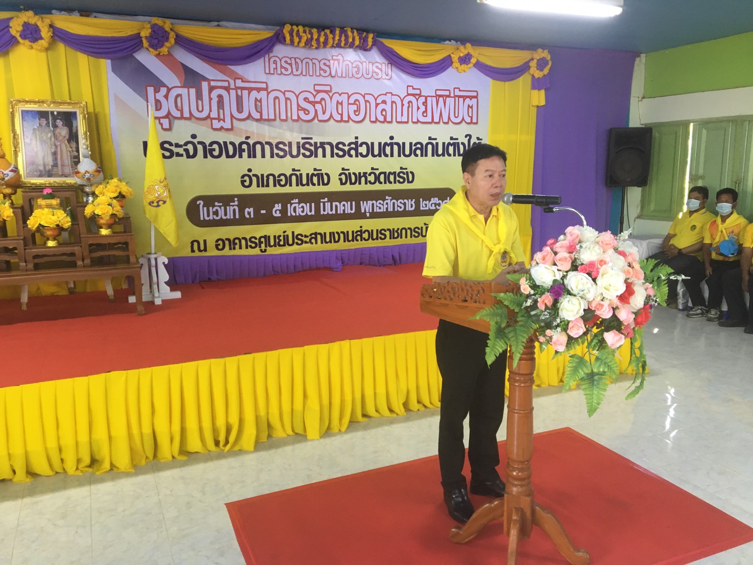 ที่อาคารศูนย์ประสานงานส่วนราชการบ้านจุปะ ต.กันตังใต้ อ.กันตัง จ.ตรัง นายไพบูลย์ โอมาก รองผู้ว่าราชการจังหวัดตรัง เป็นประธานในพิธีเปิดโครงการฝึกอบรมชุดปฏิบัติการจิตอาสาภัยพิบัติ ประจำองค์กรปกครองส่วนท้องถิ่น