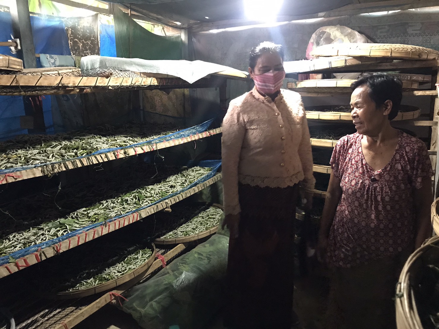 นางอรุณรัตน์ ชิงชนะ พัฒนาการจังหวัดนครราชสีมา ลงพื้นที่เยี่ยมชม ส่งเสริมสนับสนุน ให้คำแนะนำ กลุ่มสัมมาชีพชุมชนปลูกหม่อนเลี้ยงไหมบ้านหนองปื้ด ม.6 ต.หนองขาม อ.จักราช จ.นครราชสีมา กลุ่มนี้ก่อตั้งมาตั้งแต่ปี พ.ศ.2542 มีสมาชิกทั้งหมด 78 ราย เป็นกลุ่มที่อยู่ในกระบวนการต้นน้ำของการผลิตไหม เน้นการปลูกต้นหม่อนเพื่อเลี้ยงไหม สาวเส้นไหมเพื่อจำหน่าย