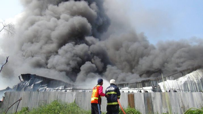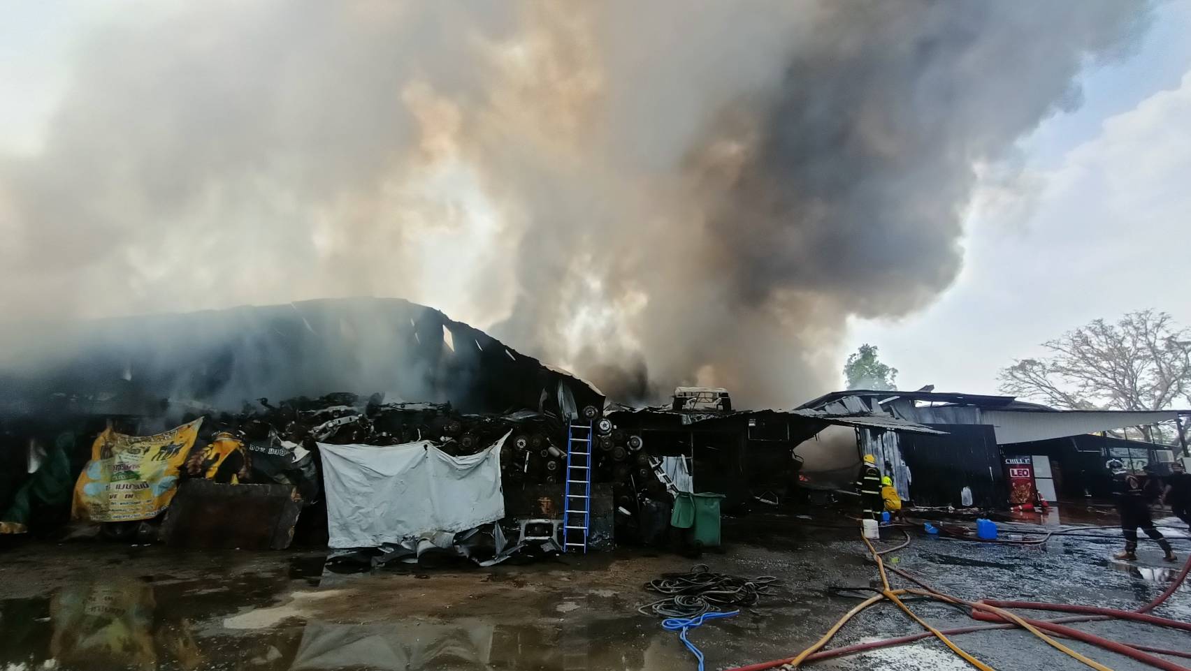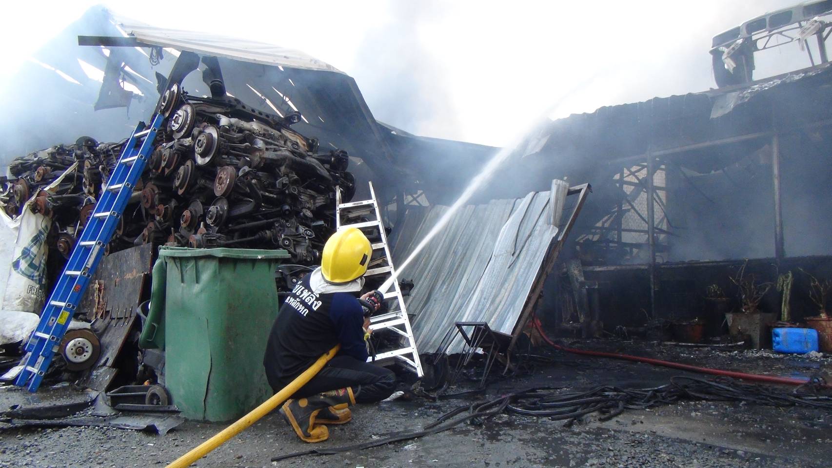 ลูกจ้างเชื่อมเหล็กทำชั้นวางอะไหล่รถบีเอ็มดับเบิ้ลยู สะเก็ดไฟกระเด็นไปโดนพรมรถยนต์วอดทั้งโกดัง
