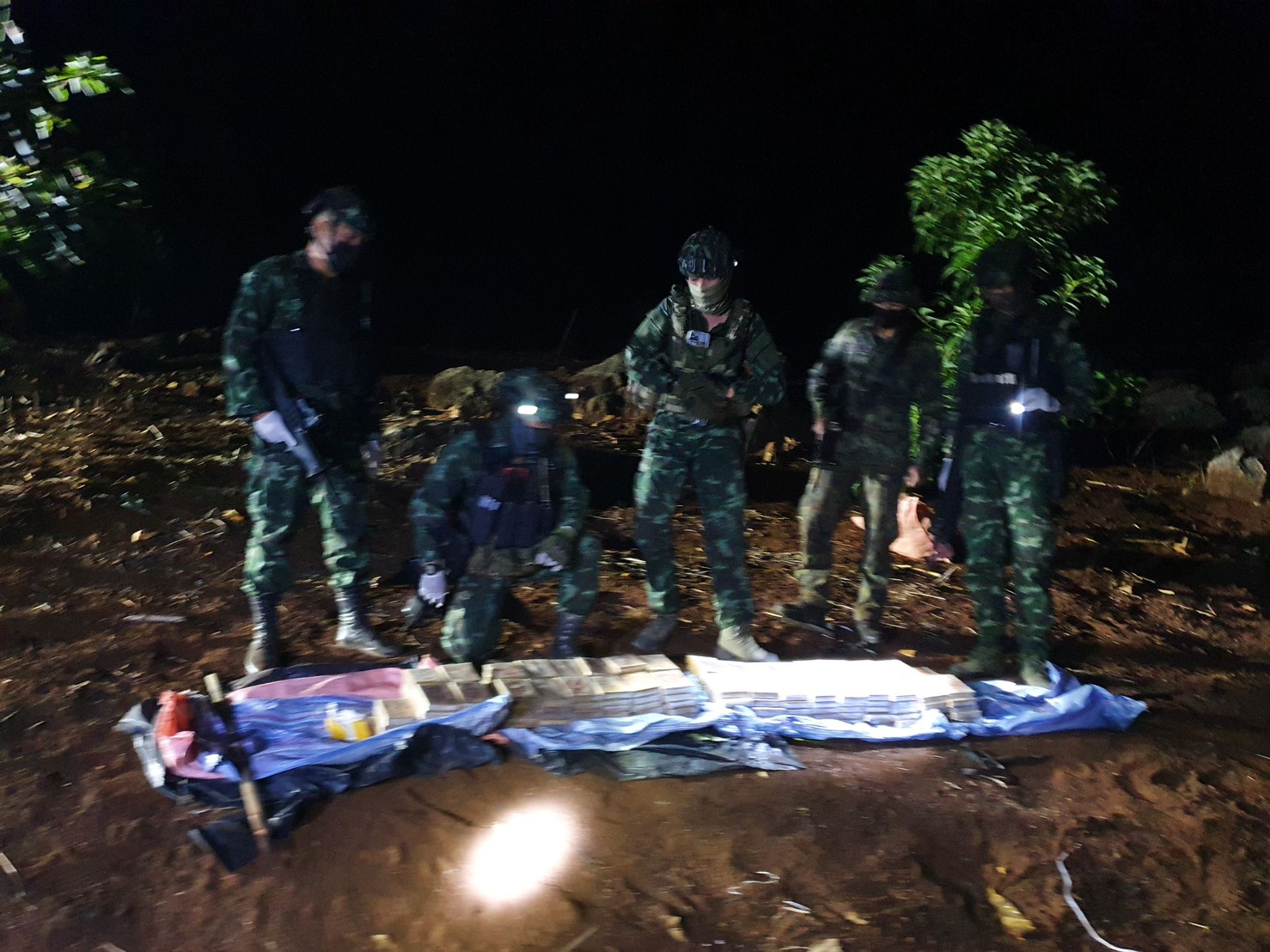 หน่วยจึงเข้าตรวจสอบพื้นที่ดังกล่าว ตรวจพบยาเสพติดประเภทที่ 1เฮโรอีน บรรจุอยู่ภายในกระสอบดัดแปลงสะพายหลัง จำนวน 173แท่ง น้ำหนักประมาณ 60.55 กิโลกรัม ช่วงเช้าทาง พล.ต.นฤทธิ์ ถาวรวงษ์ ผู้บัญชาการกองกำลังผาเมือง ได้เข้ามาตรวจสอบยาเสพติดประเภทผงขาวหรือเฮโรอิน ตราสิงห์โตคู่เหยียบลูกโลกพร้อมตรวจสอบเป็นยานรกจริงจึงขอให้ทางตำรวจภูธรนาหวาย ได้นำไปตรวจพิสูจน์เพื่อหาคนที่ลักลอบนำผงขาวเข้ามาในประเทศต่อไป