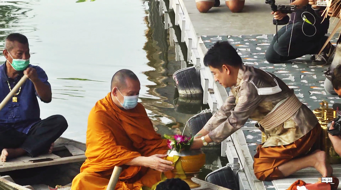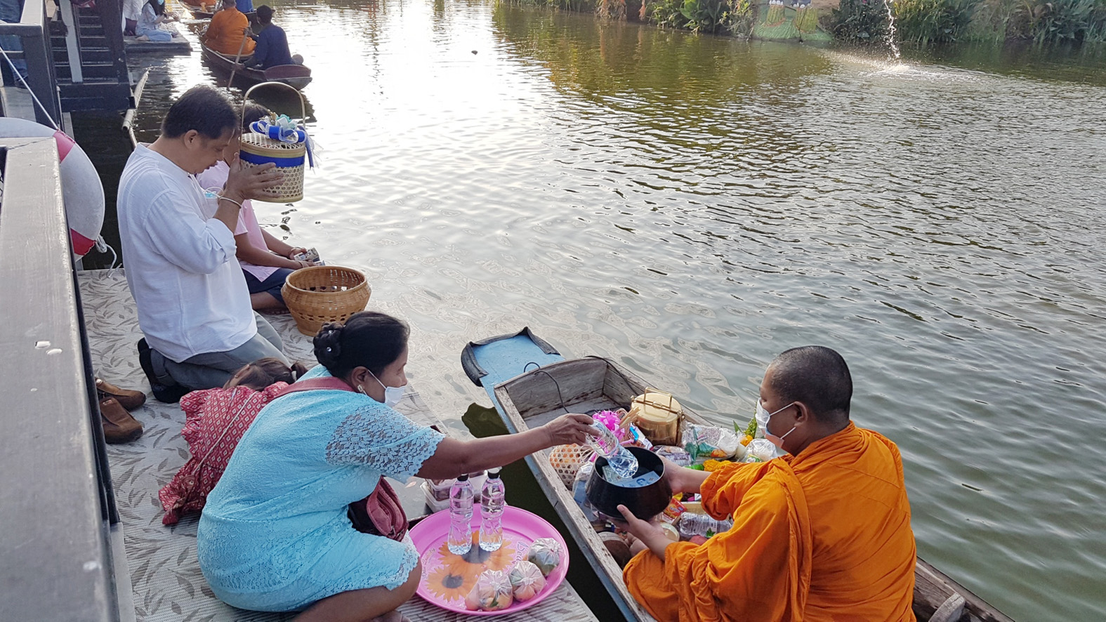 ผู้ว่าสุพรรณบุรี นำหัวหน้าส่วนราชการ ประชาชนและนักท่องเที่ยว ครู นักเรียน แต่งชุดไทยใส่บาตร นาวาภิกขาจาร ของวัดป่าเลไลยก์วรวิหาร เพื่ออนุรักษ์ฟื้นฟูประเพณีตักบาตรทางน้ำ และส่งเสริมการท่องเที่ยวกระตุ้นเศรษฐกิจหลังผ่อนปรนมาตรการโควิด19