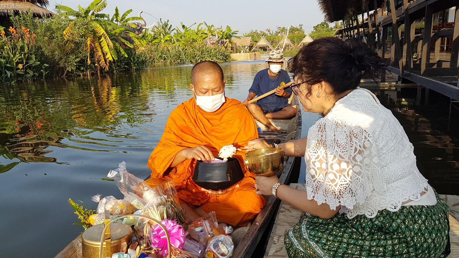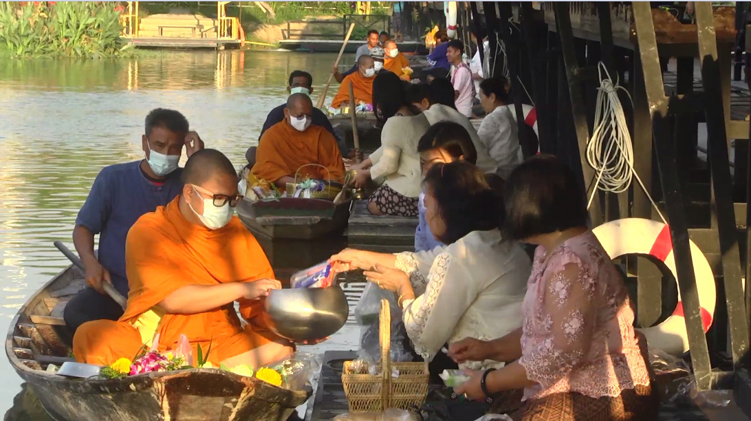 สุพรรณบุรี ผู้ว่าฯพาแต่งชุดไทยตักบาตรทางน้ำอนุรักษ์ฟื้นฟูประเพณีส่งเสริมการท่องเที่ยว