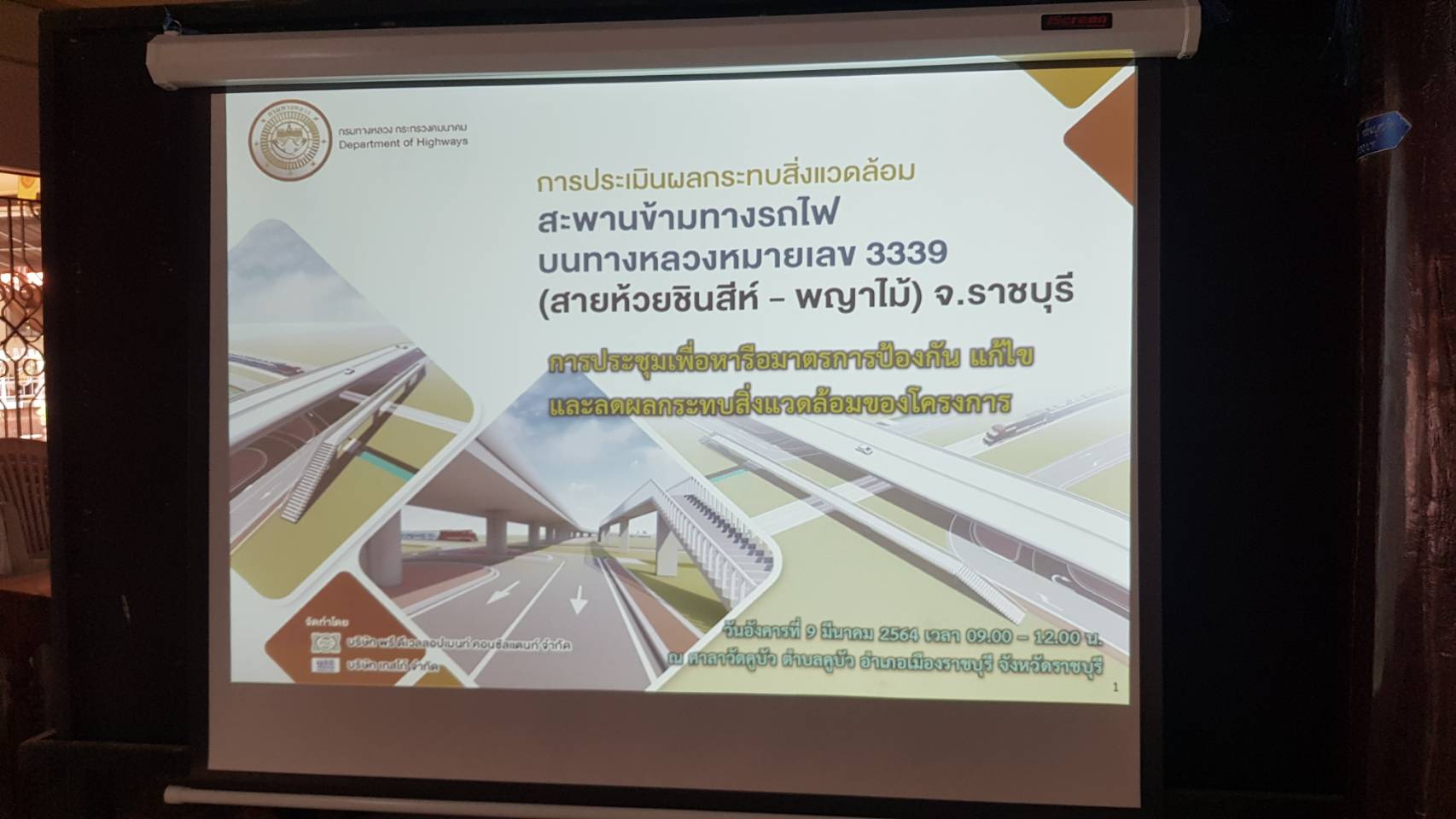 ราชบุรี สำนักแผนงานกรมทางหลวงประชุมหารือมาตราการป้องกันแก้ไขและลดผลกระทบสิ่งแวดล้อมสะพานข้ามทางรถไฟบนทางหลวงหมายเลข 3339สายห้วยชินสีห์-พญาไม้ อ.เมือง จ.ราชบุรี.