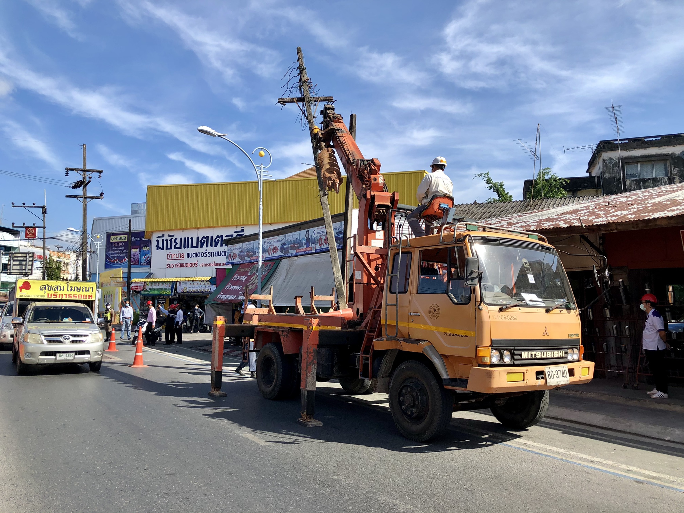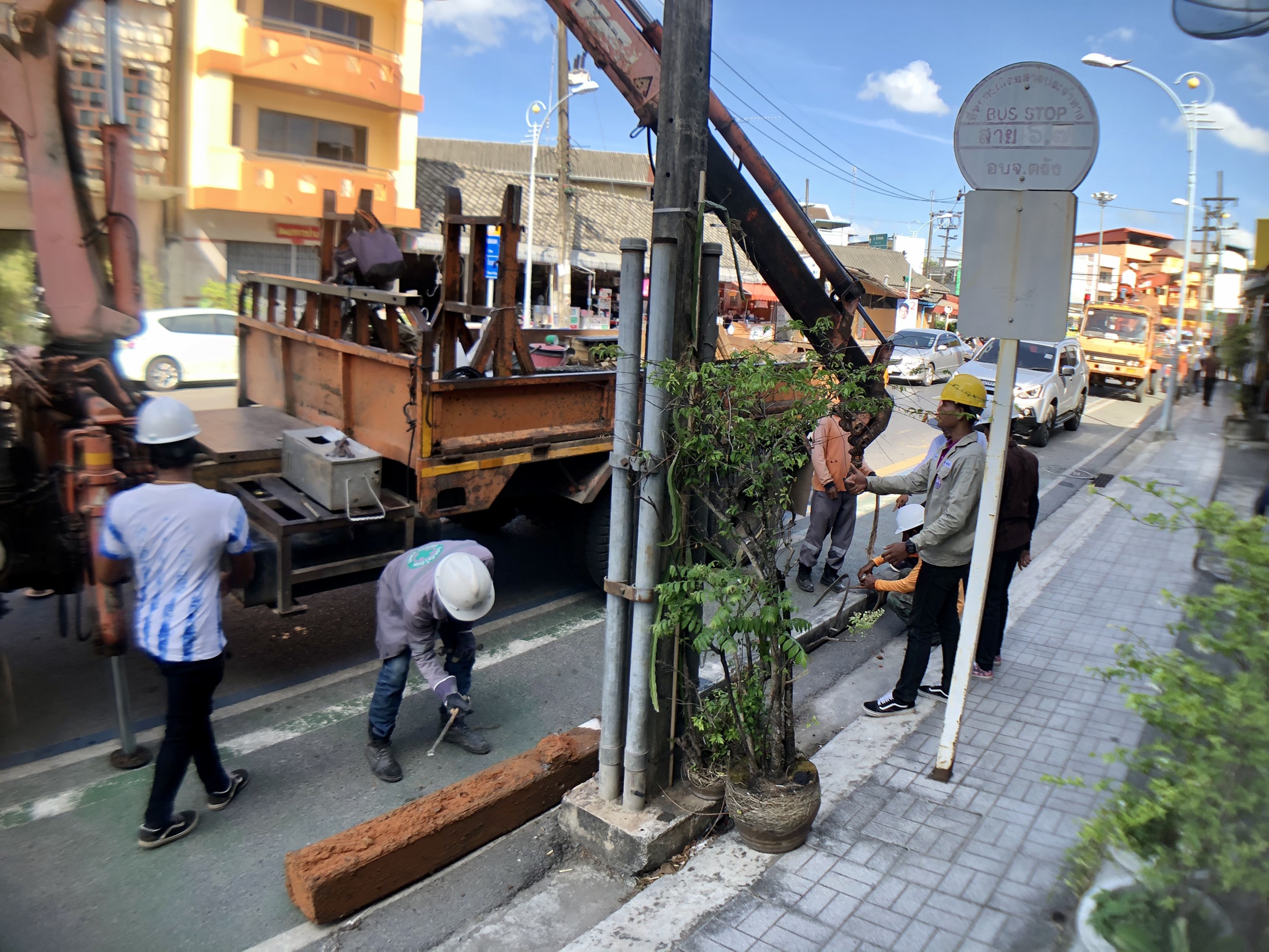 แบ่งเป็นช่วงดังนี้ ช่วงที่ 1 : สามแยกหมี ถึง สี่แยกโกกุน วันที่ 11 มีนาคม 2564 รื้อถอนเสาแรงต่ำขนาด 8 และ 9 เมตร พร้อมอุปกรณ์ประกอบ จำนวน 25 ต้น วันที่ 19 มีนาคม 2564 รื้อถอนเสาแรงสูง พร้อมอุปกรณ์ประกอบ จำนวน 23 ต้นช่วงที่ 2: ช่วงสี่แยกหอนาฬิกาถึงหน้าหมู่บ้านไทยทองธนา มีแผนดำเนินการในเดือน เมษายน 2564 PEA เล็งเห็นความสำคัญของประชาชนผู้ใช้ไฟฟ้า เพื่อให้มีสภาพแวดล้อมและทัศนียภาพที่ดีขึ้น นอกเหนือจากการให้บริการพลังงานไฟฟ้าอย่างมีประสิทธิภาพ จึงมีการดำเนินโครงการการก่อสร้างเคเบิลใต้ดิน ซึ่งเป็นการปรับเปลี่ยนระบบไฟฟ้านำสายไฟฟ้าลงใต้ดินเพื่อความมั่นคงของระบบไฟฟ้า