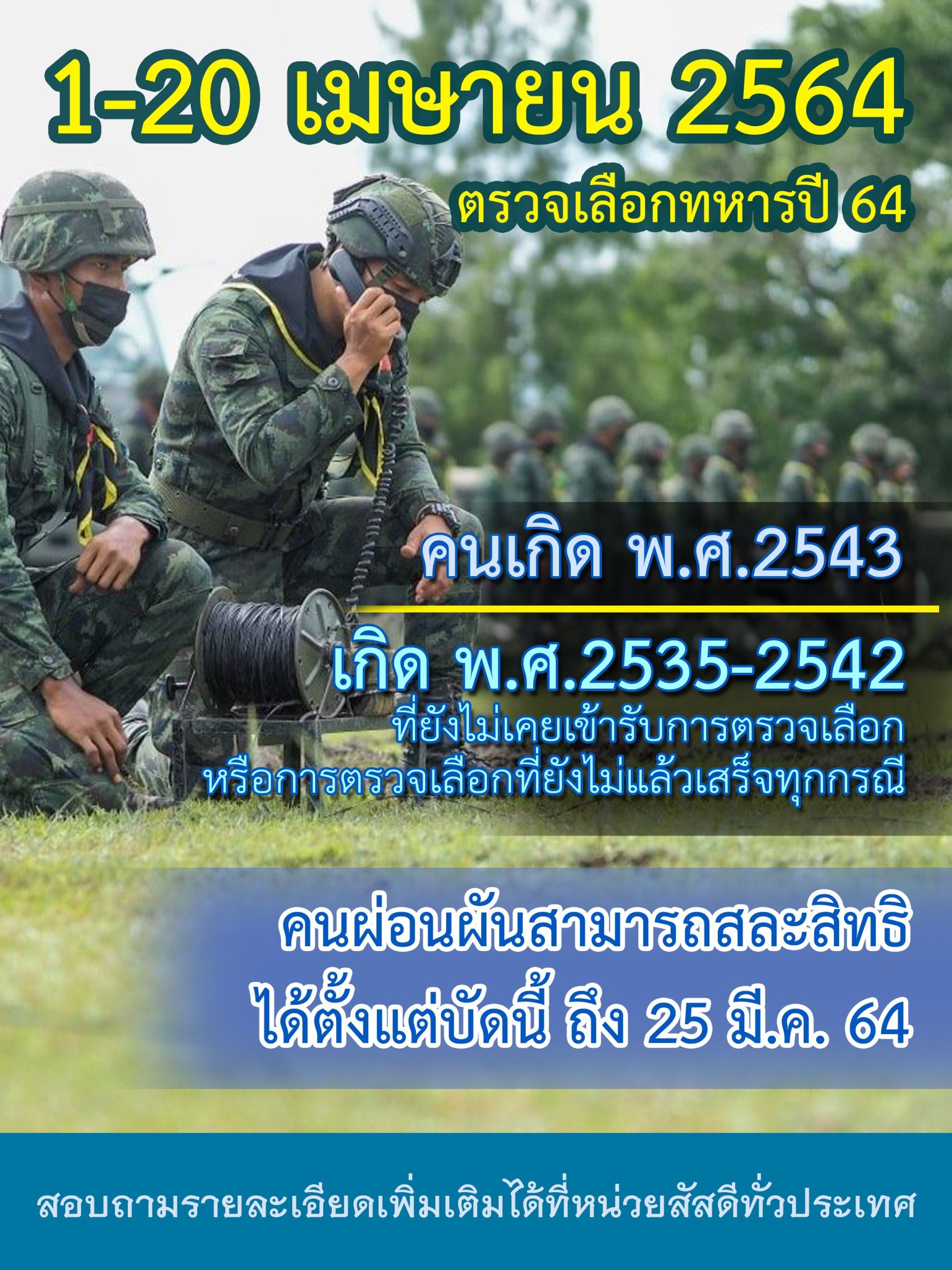 การตรวจเลือกทหารกองเกินเข้ารับราชการทหารกองประจำการ ประจำปี 2564