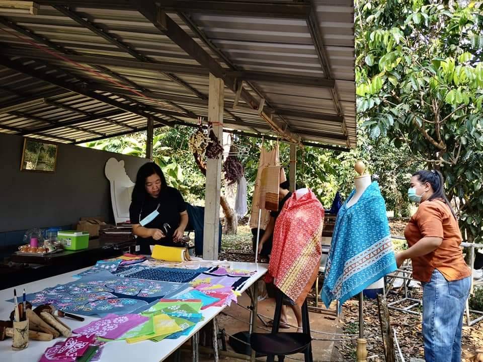 พช.จันทบุรี ลงพื้นที่ให้กำลังใจผู้ประกอบการนำร่อง ผู้สานพระปณิธาน สมเด็จพระเจ้าลูกเธอ เจ้าฟ้าสิริวัณณวรี นารีรัตนราชกัญญา ประยุกต์ลายผ้าพระราชทาน “ผ้ามัดหมี่ลายขอเจ้าฟ้าสิริวัณณวรีฯ”