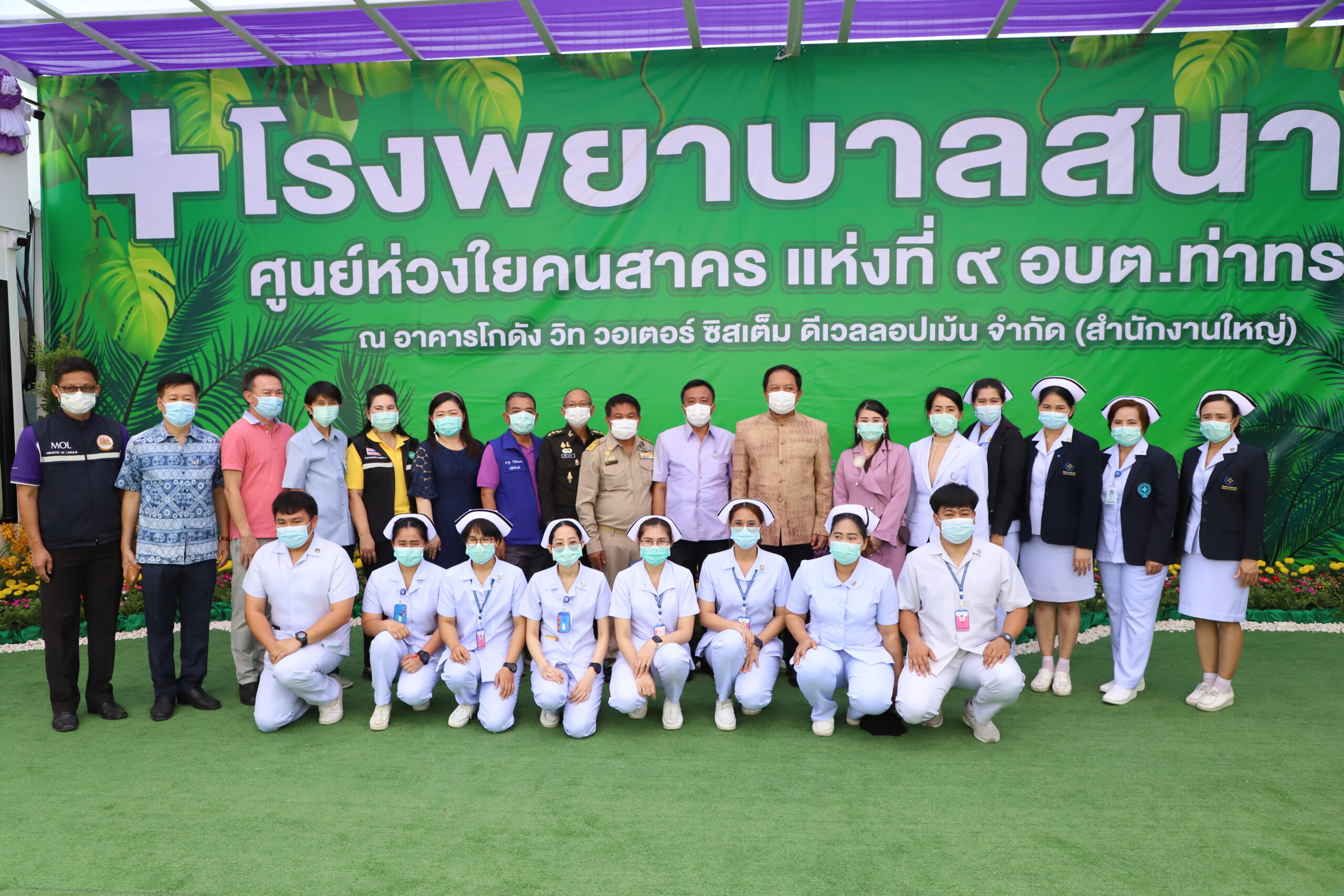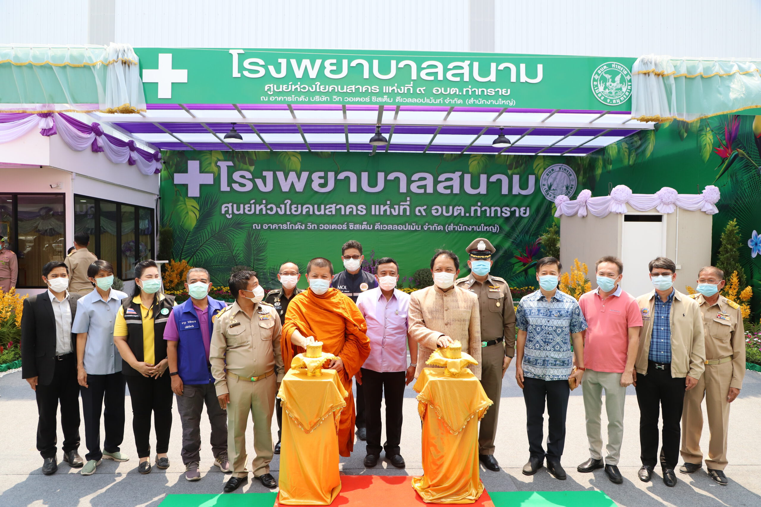 นายสิริบูรณ์ ทองบางเกาะ นายก อบต.ท่าทราย กล่าวว่า ด้วยสำนึกในพระมหากรุณาธิคุณอันหาที่สุดมิได้ สมเด็จพระกนิษฐาธิราชเจ้า กรมสมเด็จพระเทพรัตนราชสุดาฯ สยามบรมราชกุมารี ทรงพระกรุณาโปรดเกล้าฯ ให้มูลนิธิชัยพัฒนา จัดตั้งกองทุนชัยพัฒนาสู้ภัยโควิด 19 โดยสำนักงานมูลนิธิชัยพัฒนา ได้มอบห้องน้ำสำเร็จรูป Complete Pod-UP พระราชทาน แก่โรงพยาบาลสนามแห่งที่ 9 จังหวัดสมุทรสาครจำนวน 40 ห้อง ทั้งนี้สืบเนื่องจากปัจจุบันสถานการณ์การแพร่ระบาดของโรคติดเชื้อไวรัสโคโรนา 2019 (โควิด-19) ในพื้นที่จังหวัดสมุทรสาคร ที่ยังคงเป็นพื้นที่ควบคุมสูงสุด ในการนี้ทาง อบต.ท่าทราย ได้รับมอบหมายภารกิจให้เป็นผู้รับผิดชอบหลักในการจัดหาสถานที่สร้างศูนย์ห่วงใยคนสาครแห่งที่ 9 เพิ่มขึ้นอีกหนึ่งแห่ง โดยในส่วนของ “ศูนย์ห่วงใยคนสาคร แห่งที่ 9” นี้ มีขนาด 480 เตียง เป็นสถานที่เพื่อรองรับผู้ติดเชื้อโควิด 19 ที่อาจจะพบได้ทั้งในปัจจุบันและอนาคต หรือปรับใช้ตามความเหมาะสมที่คณะกรรมการโรคติดต่อจังหวัดสมุทรสาครเห็นสมควร เช่น เป็นสถานที่ Local Quarantine หรือ สถานที่กักกันโรค ที่จะใช้กักตัวแรงงานต่างด้าวที่จะเข้ามาทำงานภายสถานประกอบการของจังหวัด รวมถึงกลุ่มคนที่เดินทางมาจากต่างประเทศที่จะเข้าพื้นที่สมุทรสาคร เป็นต้น