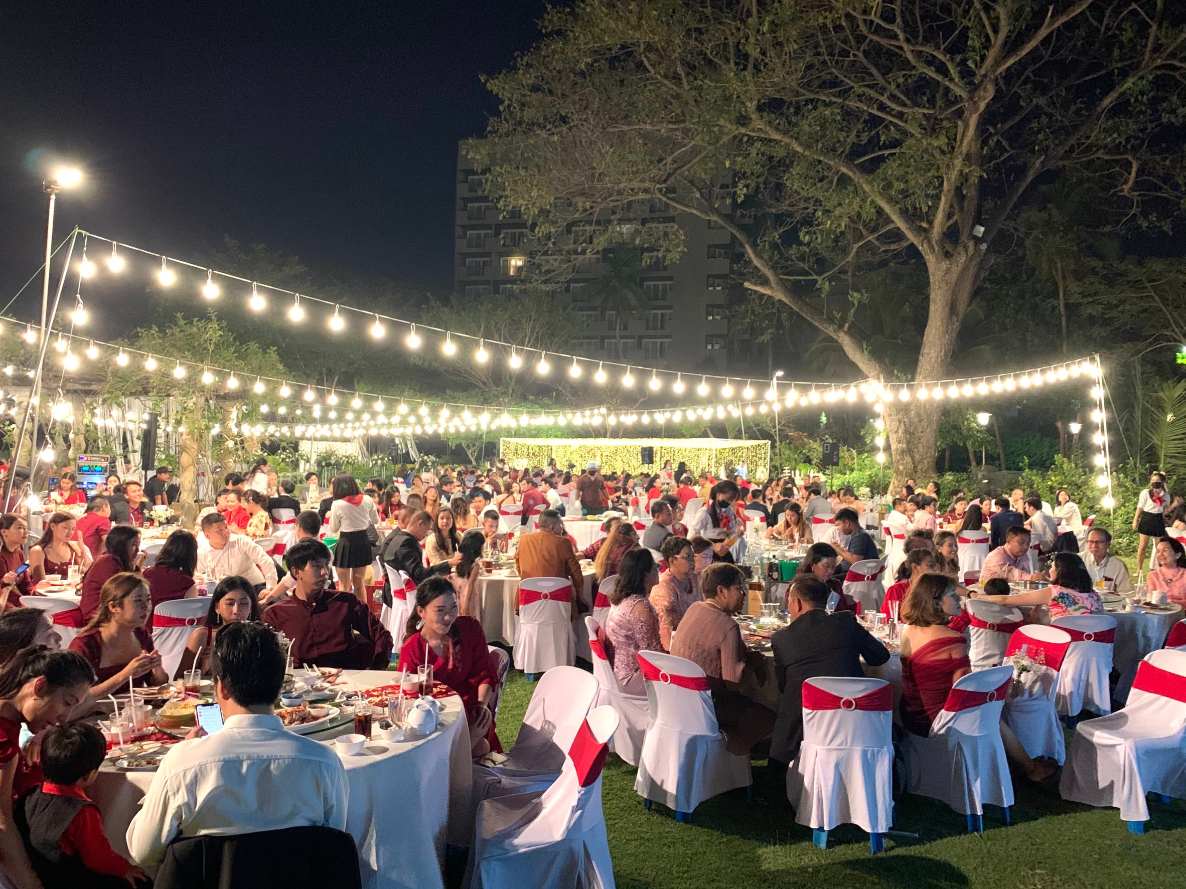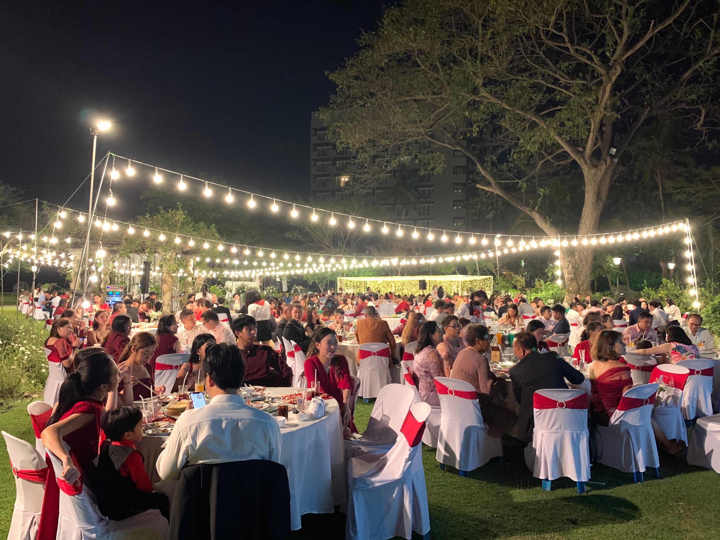 ณ ลานน้ำพุภายในสวนสามพราน อ.สามพราน จ.นครปฐม ผู้มีเกียรติร่วมแสดงความยินดี คับคั่ง
