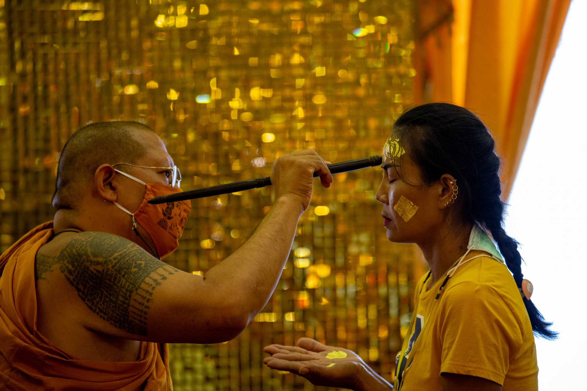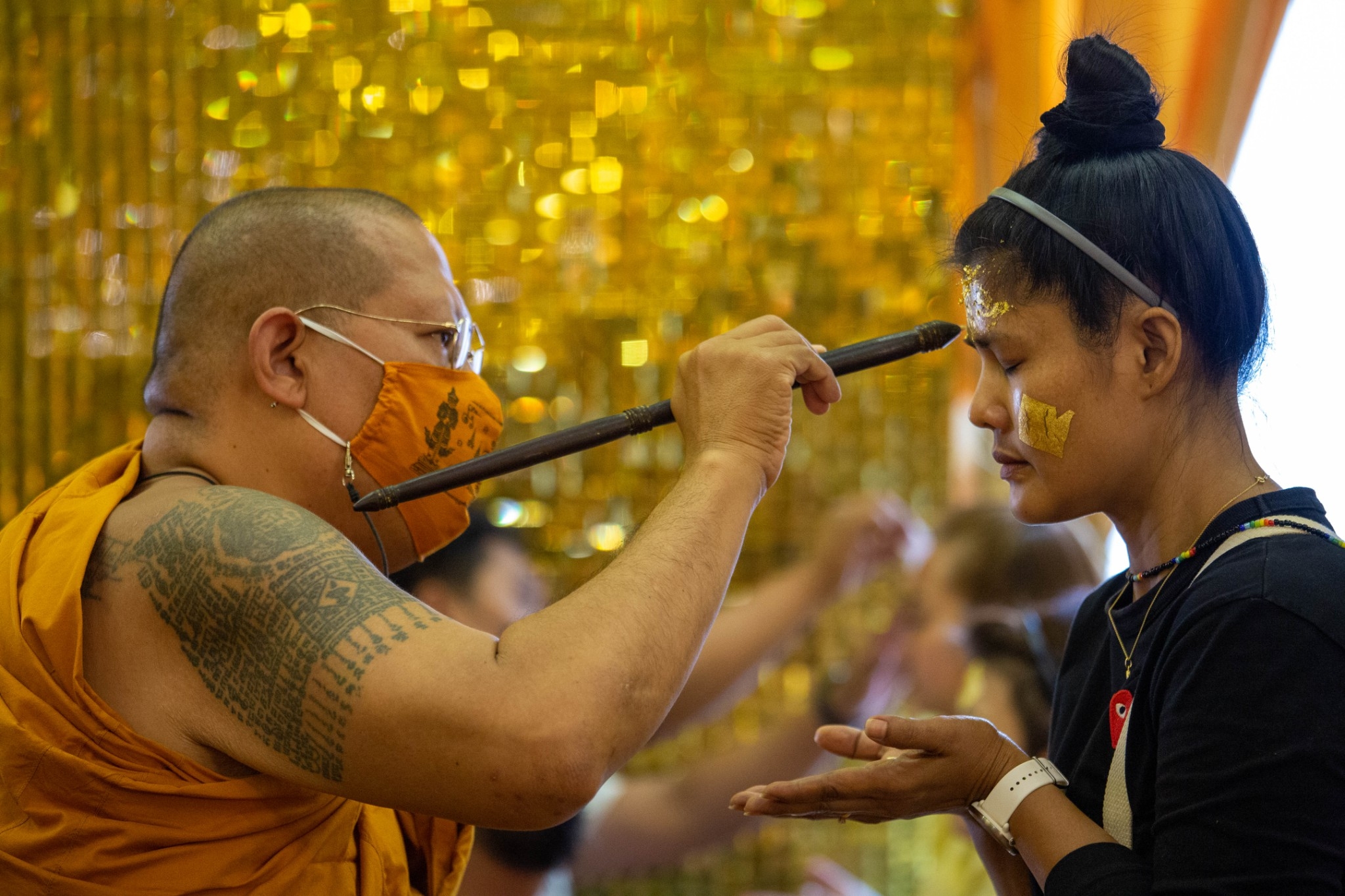 ด้าน นางสาวจูน อายุ 23 ปี บอกว่าตนเองเชื่อในเรื่องพุทธคุณของพิธีการนี้ เพราะเป็นเครื่องยึดเหนียวจิตใจแม้ตนเองจะไม่ได้กกระทบกับวิกฤติที่ผ่านมามากนัก แต่การได้มาลงนะหน้าทองถือว่าเป็นการต่อยอดให้กับตนเองในเรื่องความเอ็นดูจากผู้หลักผู้ใหญ่ที่จะสนับสนุนในหน้าที่การงาน ส่วนตัวมองว่าไม่ได้เป็นเรื่องงมงายและเป็นสิ่งที่ชาวพุทธนั้นได้กำลังใจในยามบ้านเมืองเกิดวิกฤติแบบนี้ที่ดีที่สุด