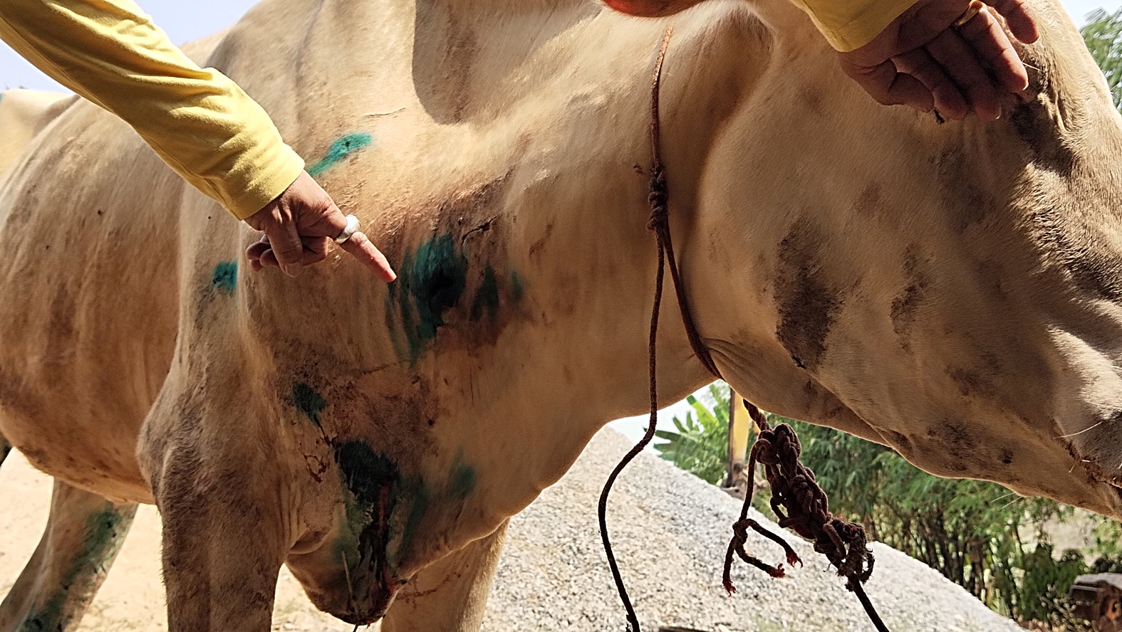 ที่ จ.สุพรรณบุรี วันที่ 20 มี.ค. 2564 ผู้สื่อข่าวรับแจ้งว่า มีวัวถูกสัตว์ไม่ทราบชนิดทำร้ายกัดได้รับบาดเจ็บสาหัส ที่บริเวณอุทยานพระฤาษีองค์ใหญ่ หมู่ 13 ต.หนองโอ่ง อ.อู่ทอง จึงลงพื้นตรวจสอบพร้อมนายสุธีร์ ลอยมา หัวหน้าเขตห้ามล่าสัตว์ป่าบึงฉวาก จ.สุพรรณบุรี ที่เกิดเหตุมีโรงเลี้ยงสัตว์ชั่วคราวอยู่บริเวณหลังอุทยาน พบ วัวเพศเมีย อายุ6ปี มีร่องรอยคล้ายของเขี้ยวสัตว์กัดที่คอด้านขวาเป็นแผลคล้ายรอยเขี้ยวเป็นรูบริเวณลำตัว ขาหลังทั้งสองข้างและก้นมีรอยขีดข่วนเป็นทางยาวหลายแห่งเจ้าหน้าที่มีอาการตื่นตระหนก สร้างความสงสารแก่ผู้พบเห็น